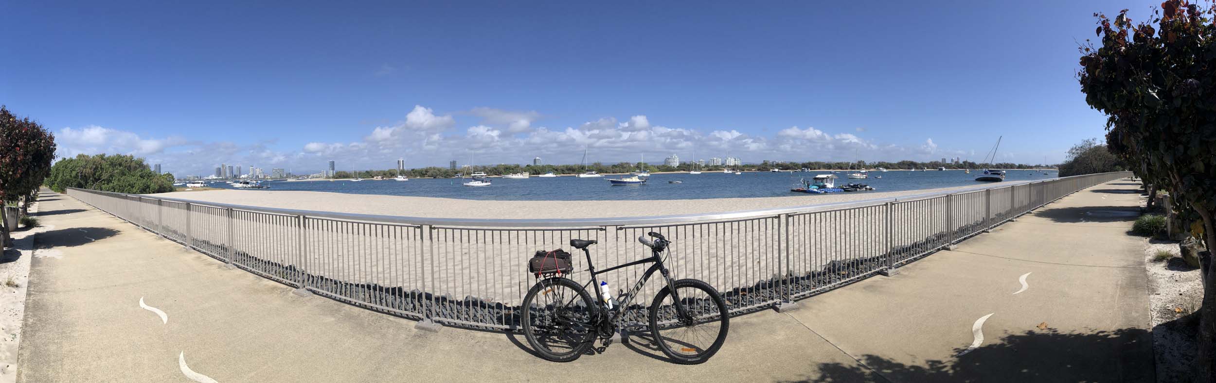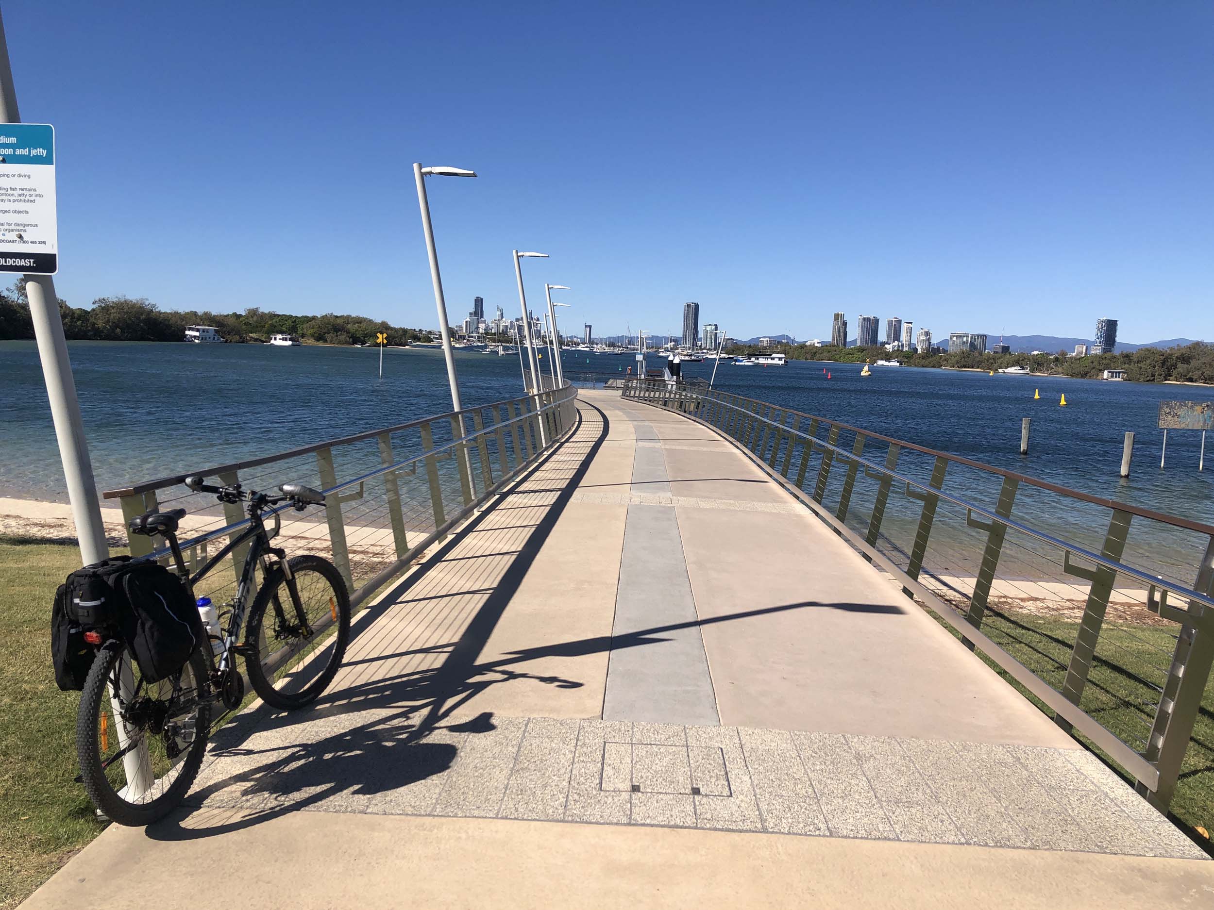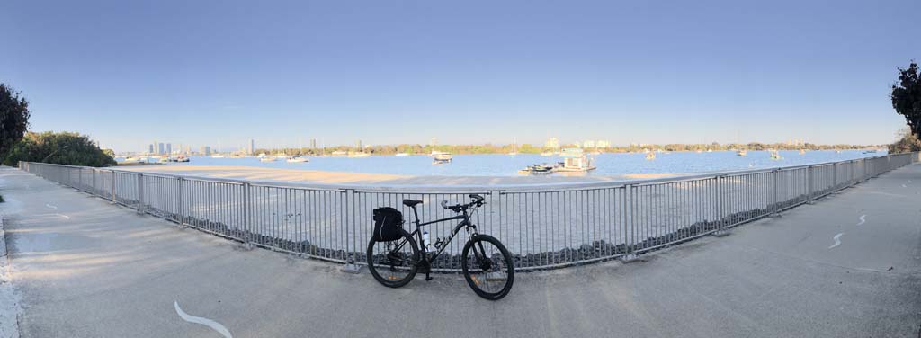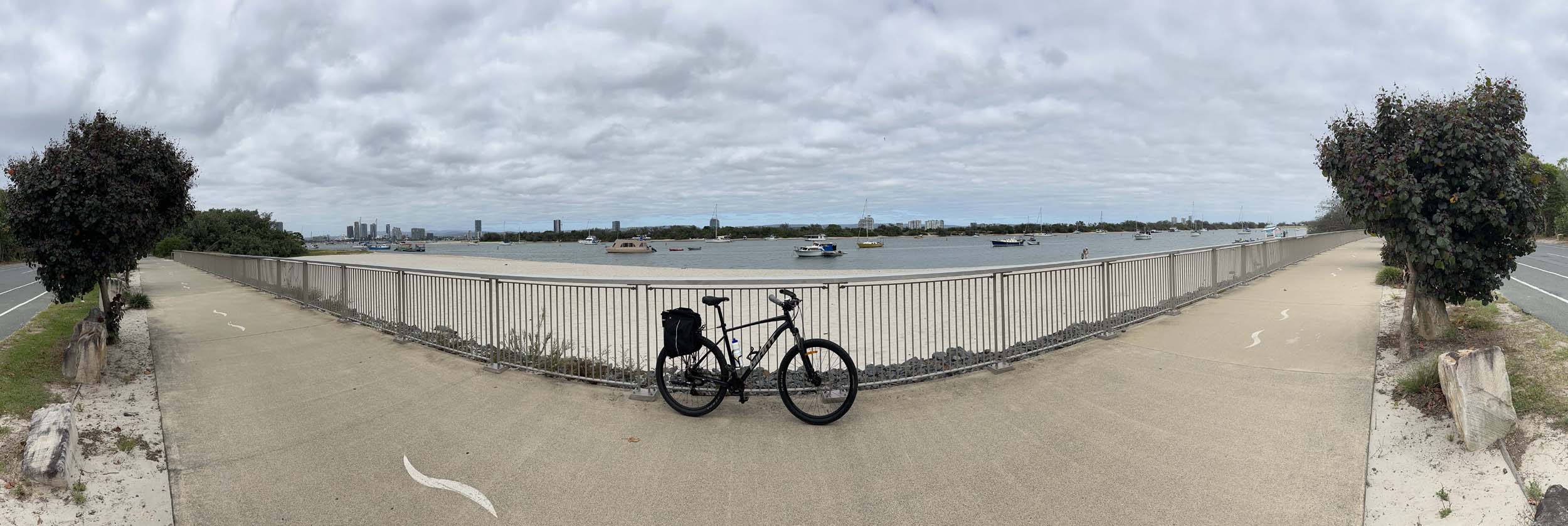 We rode around the Shared path from Charis Seafoods to the Superyachts Jetty at Southport YC via the BIG Playground and The Sundale Bridge and return.