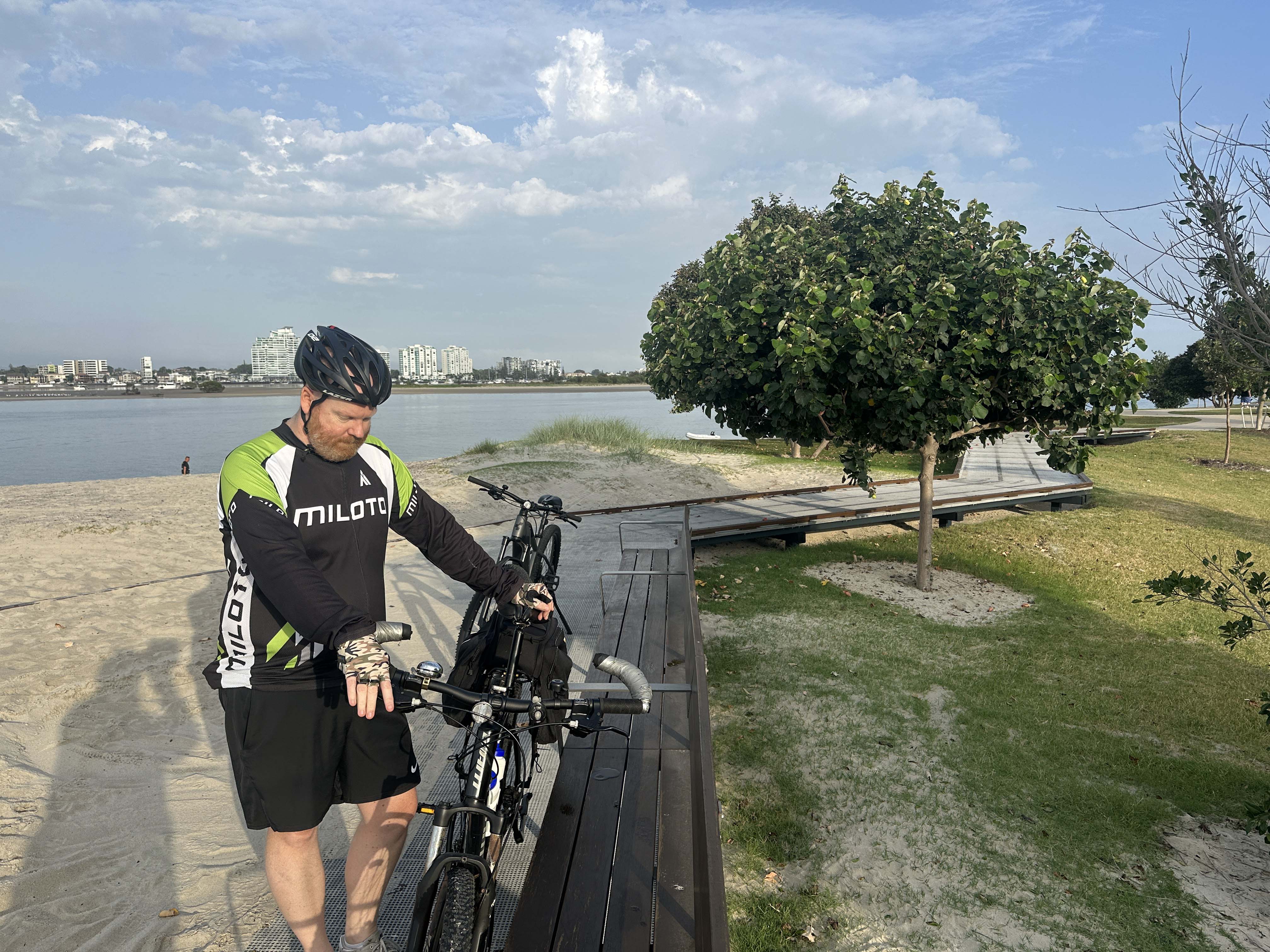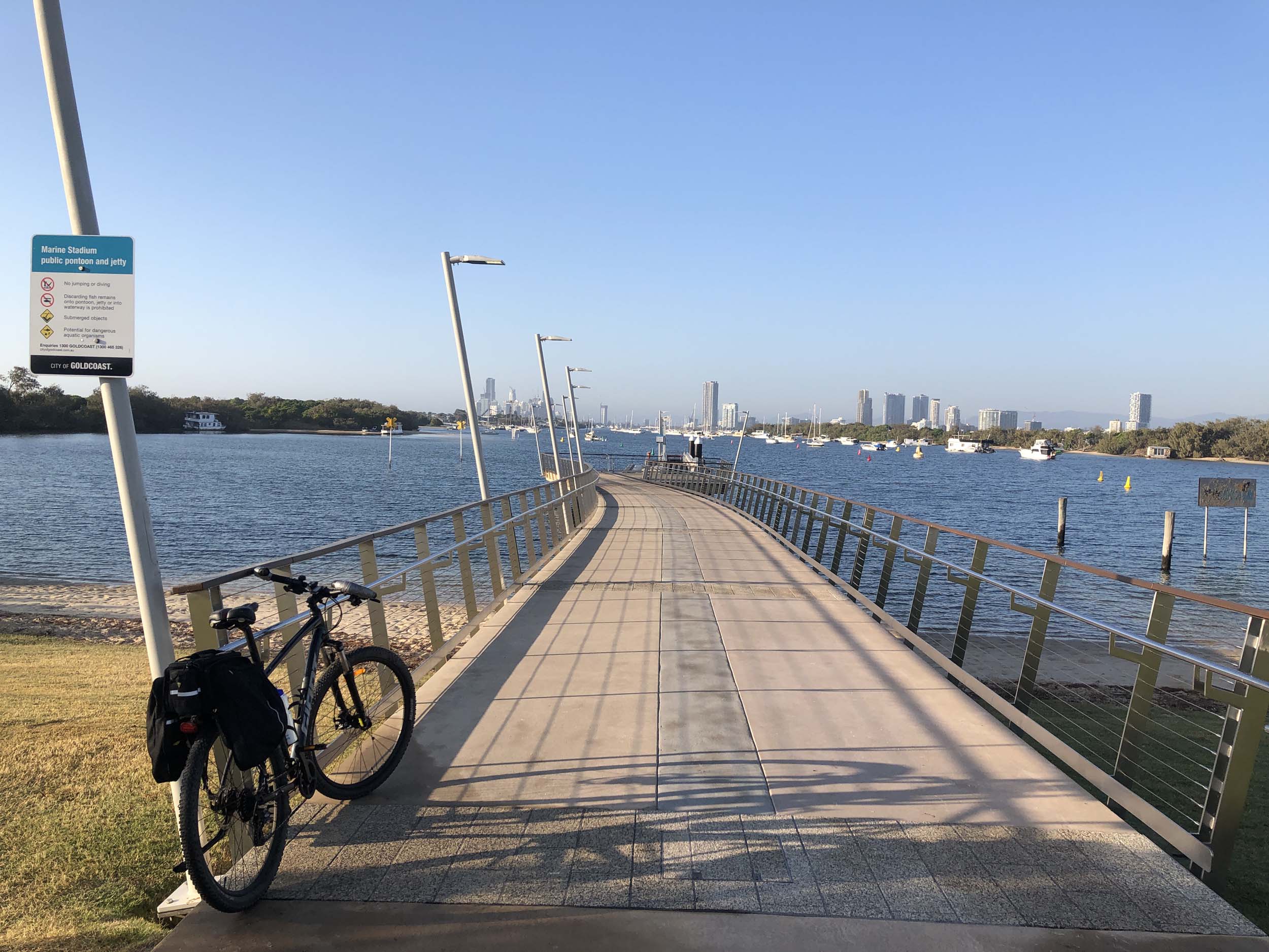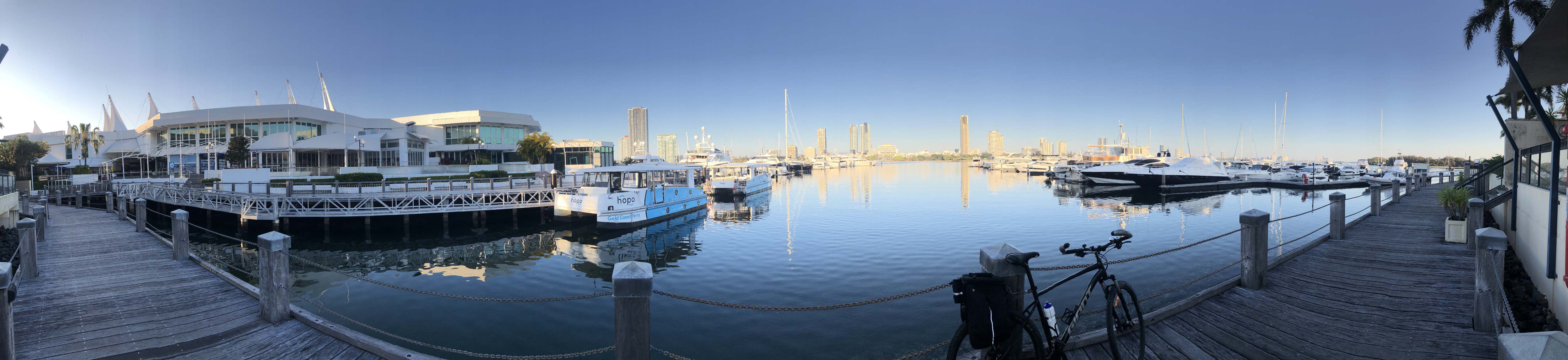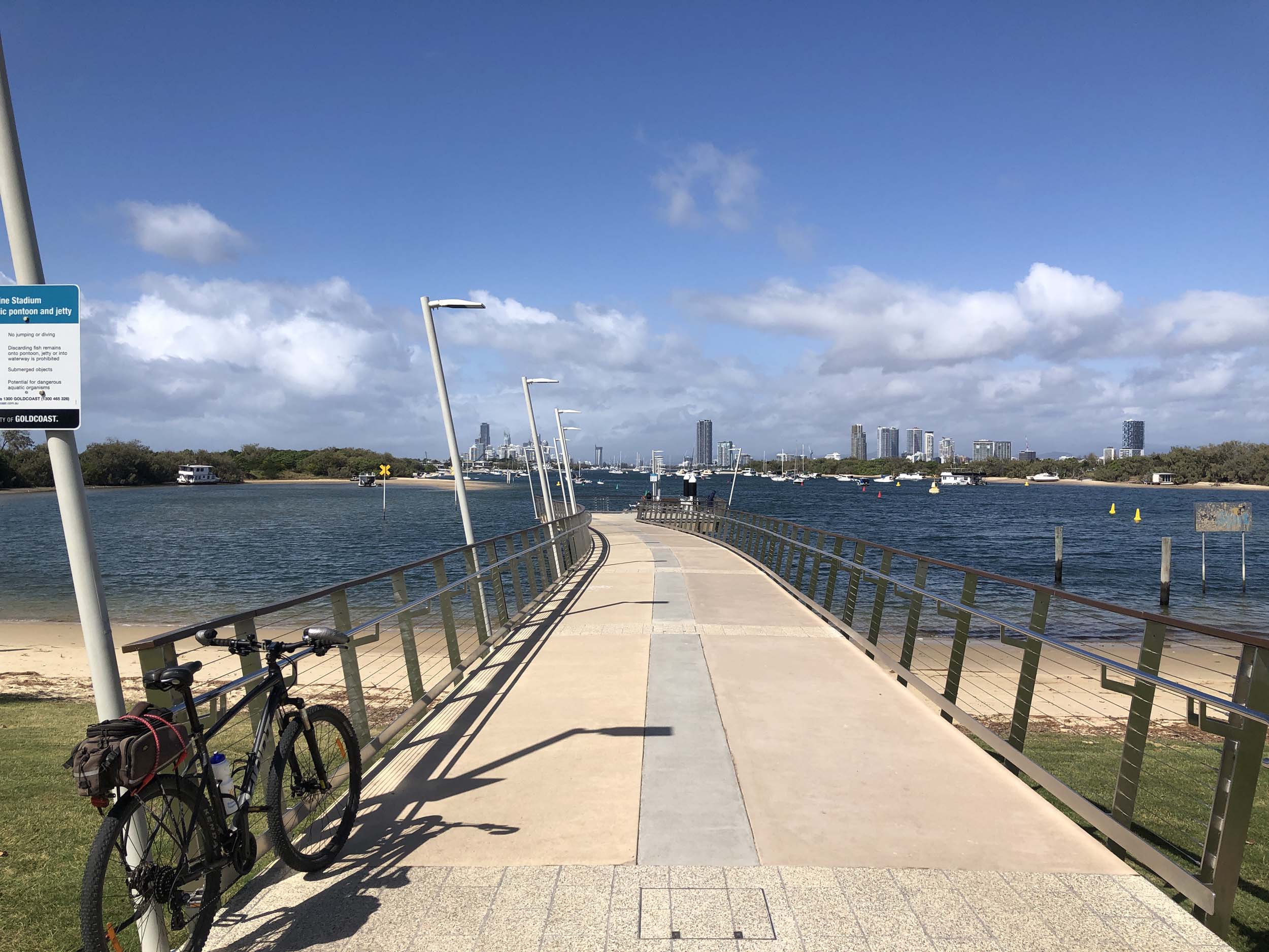 We rode around the Shared path from Charis Seafoods to the Superyachts Jetty at Southport YC via the BIG Playground and The Sundale Bridge and return.