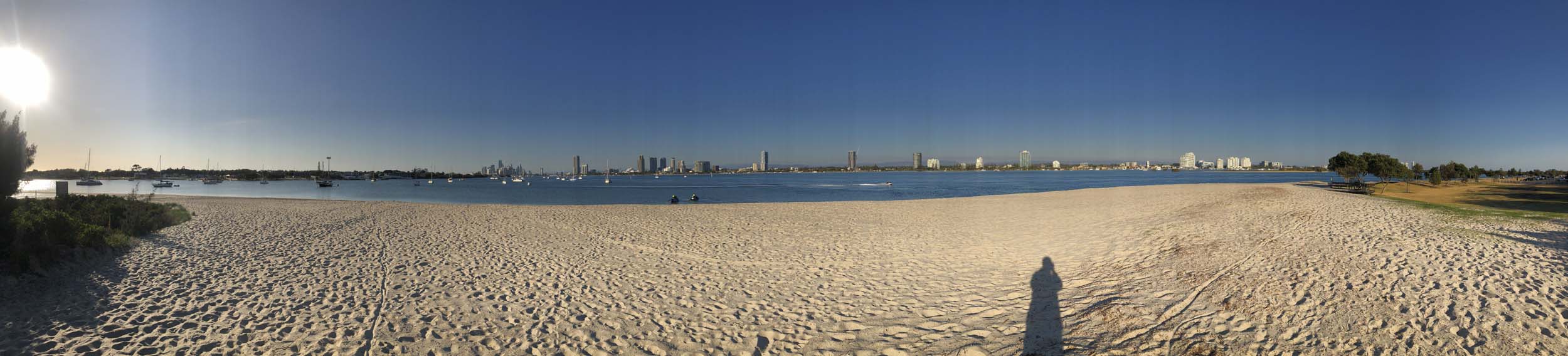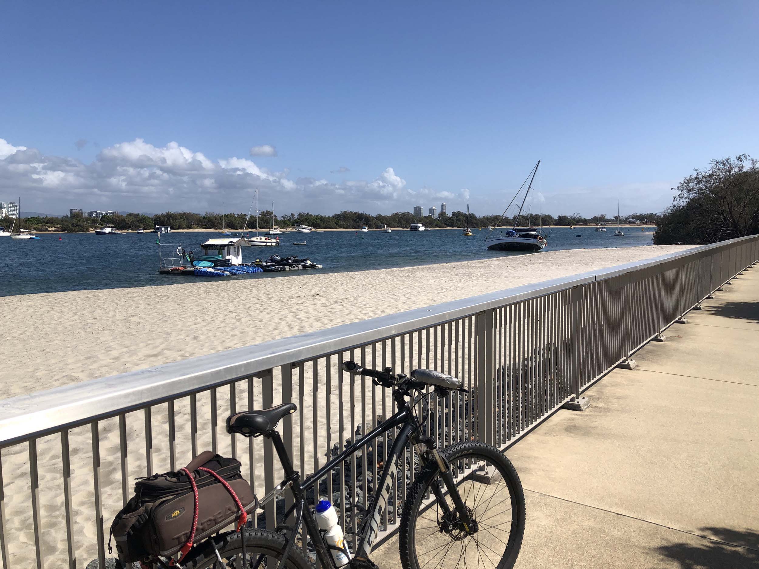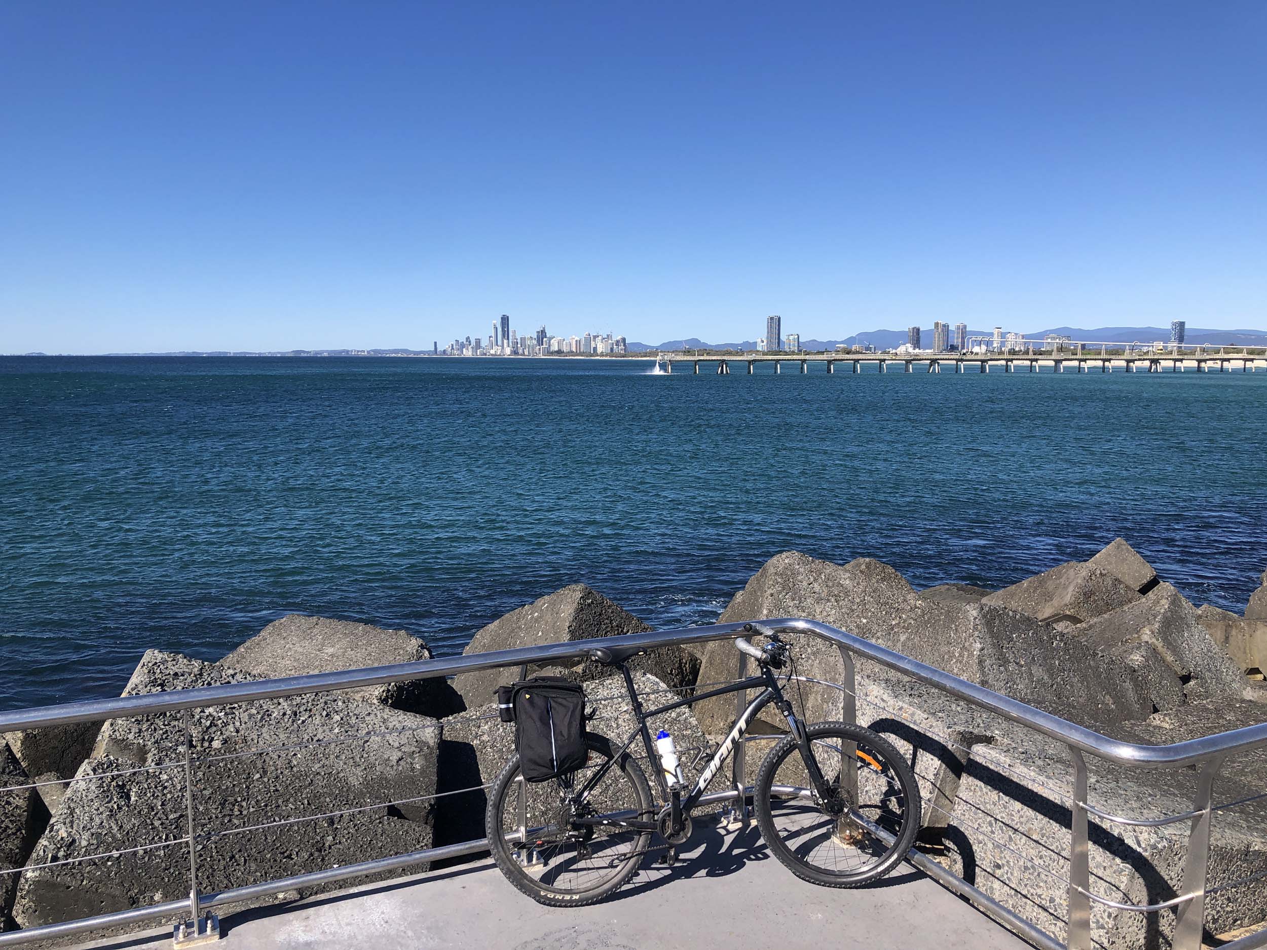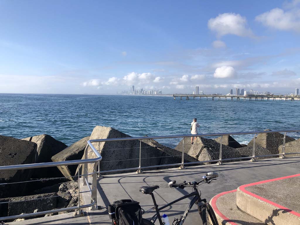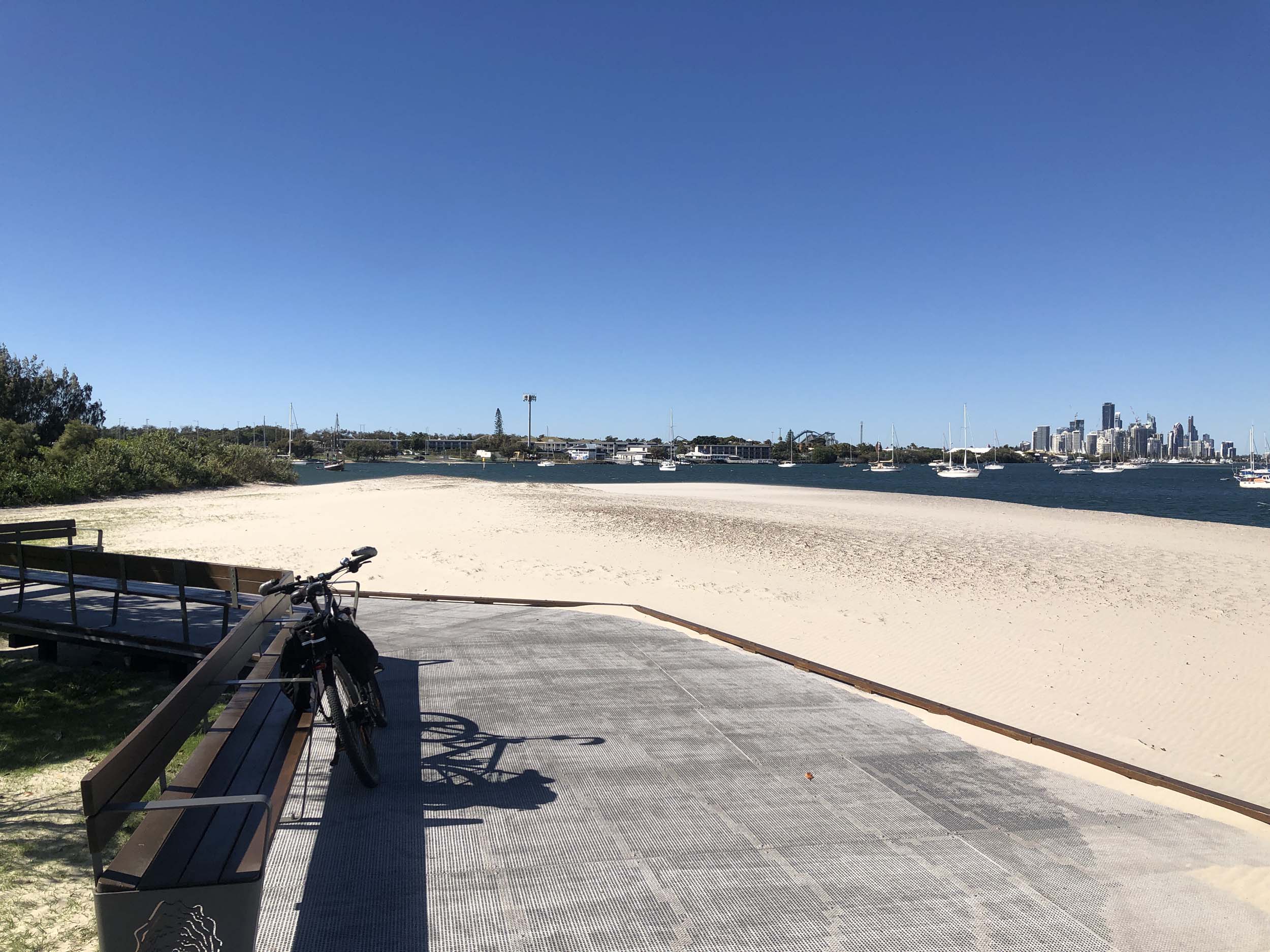 Continued through the Southport YC, along the jetties at Marina Mirage, around the edge of the Seaworld carpark, continuing along the shared path to The Spit.
