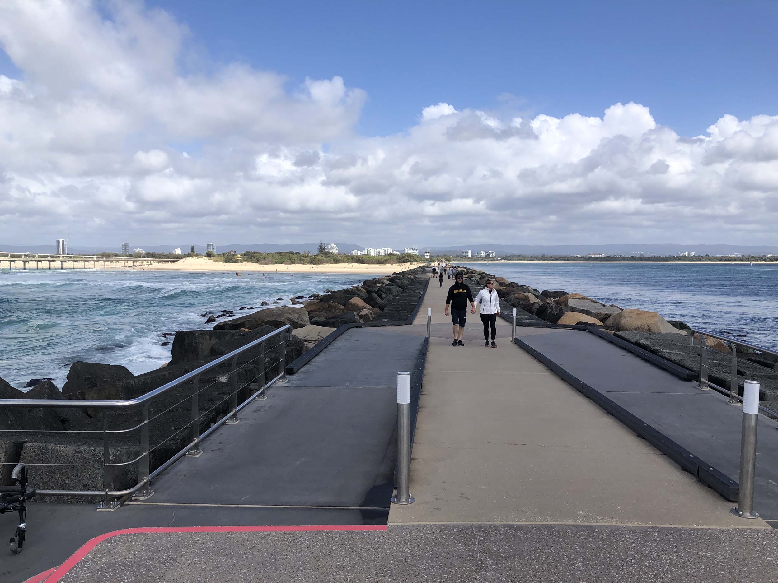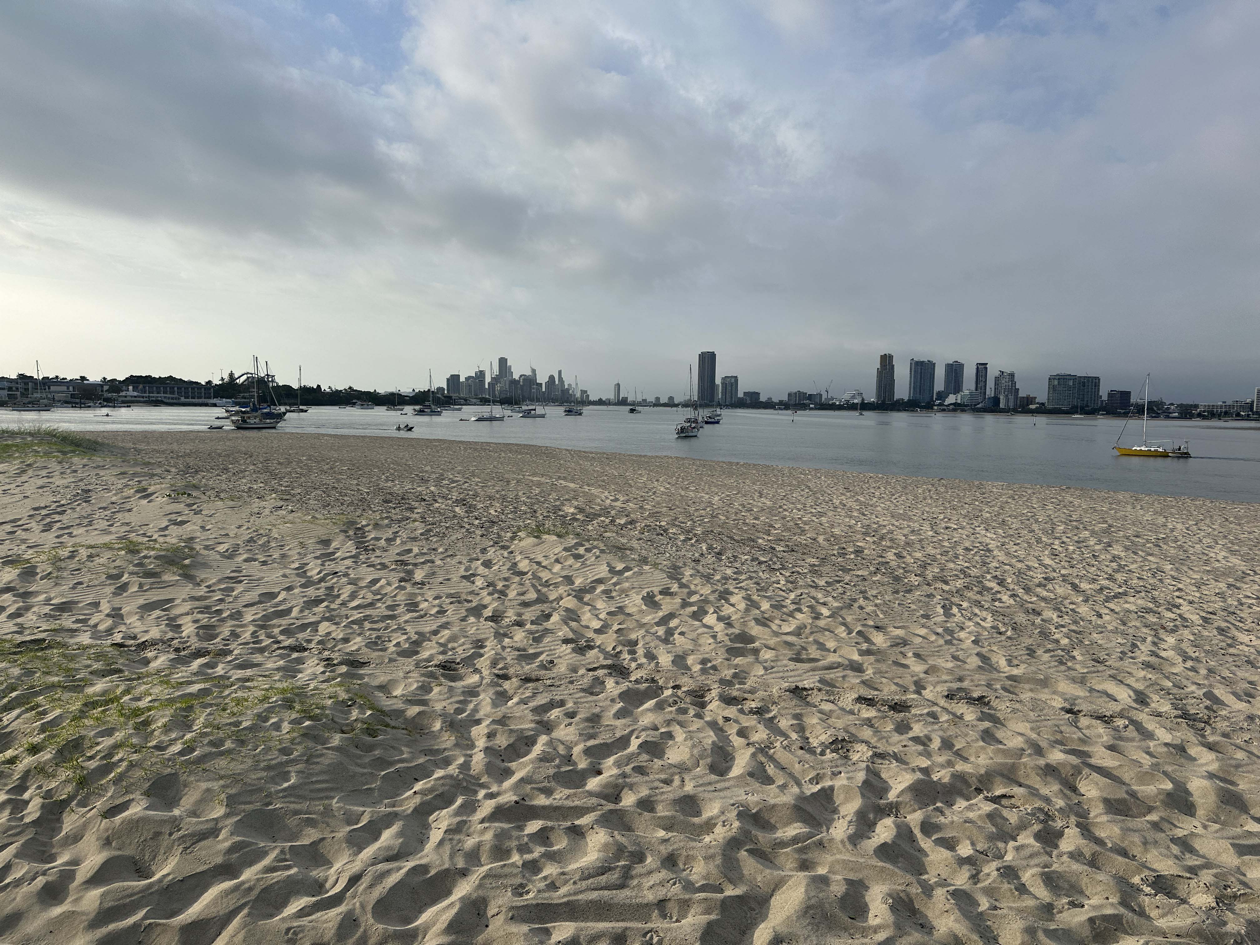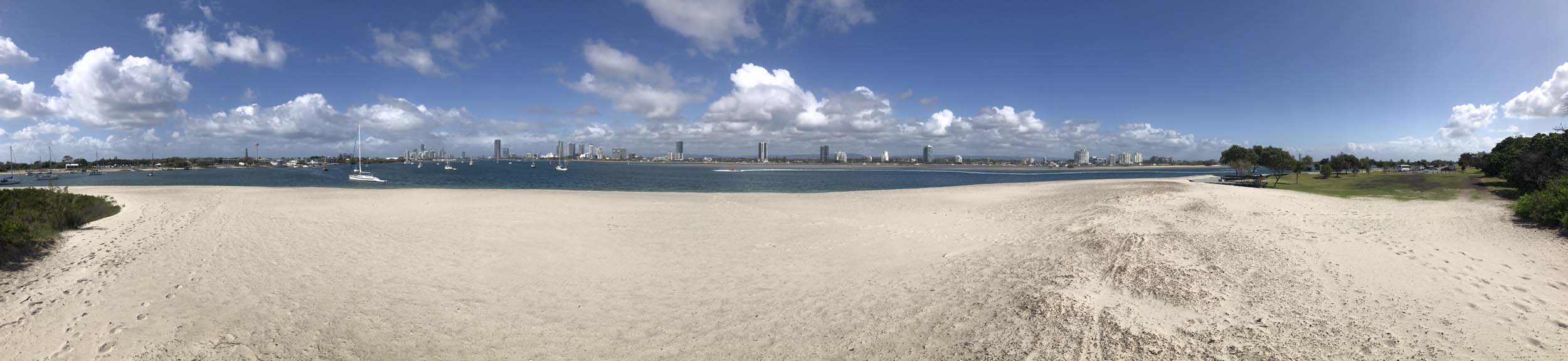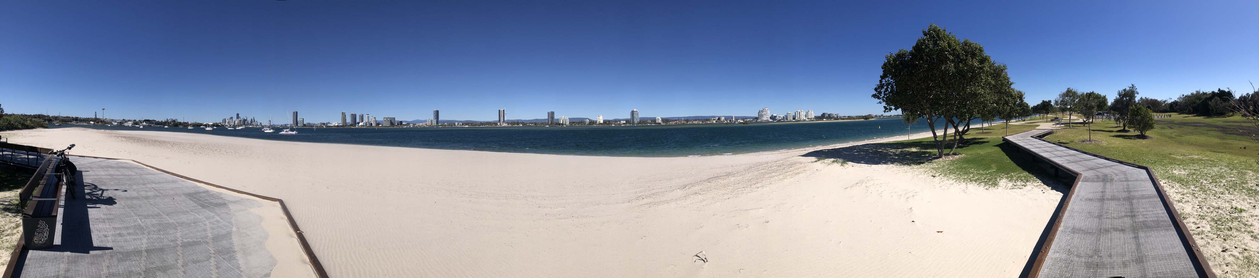 Continued through the Southport YC, along the jetties at Marina Mirage, around the edge of the Seaworld carpark, continuing along the shared path to The Spit.