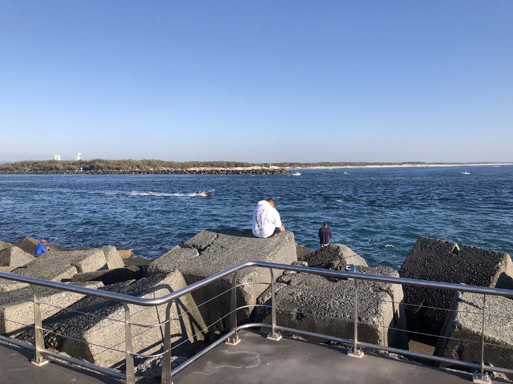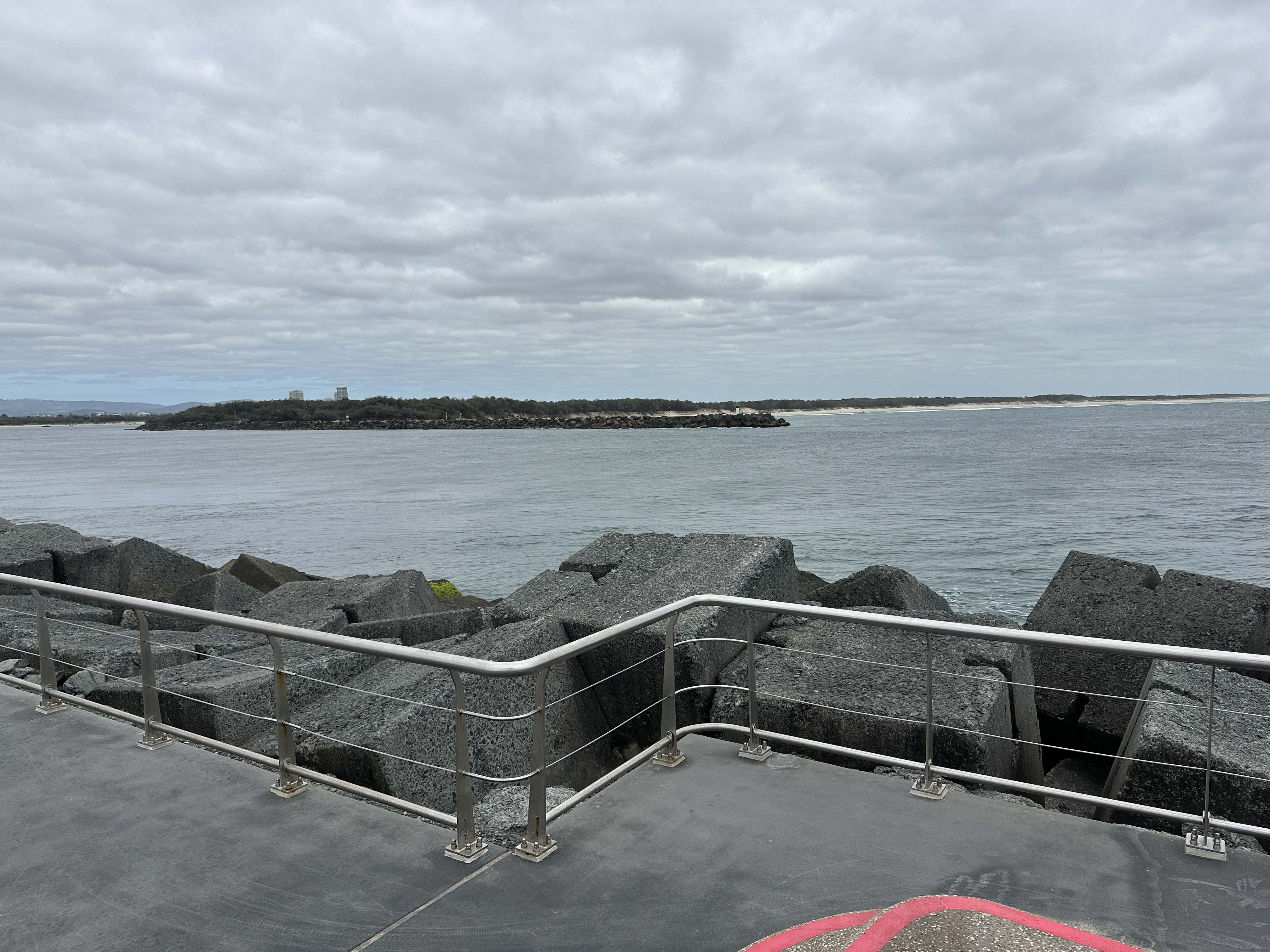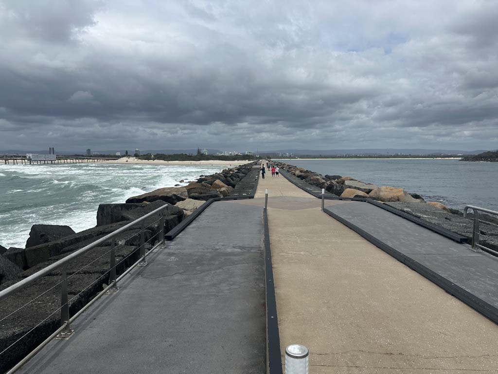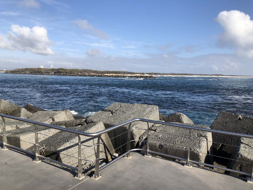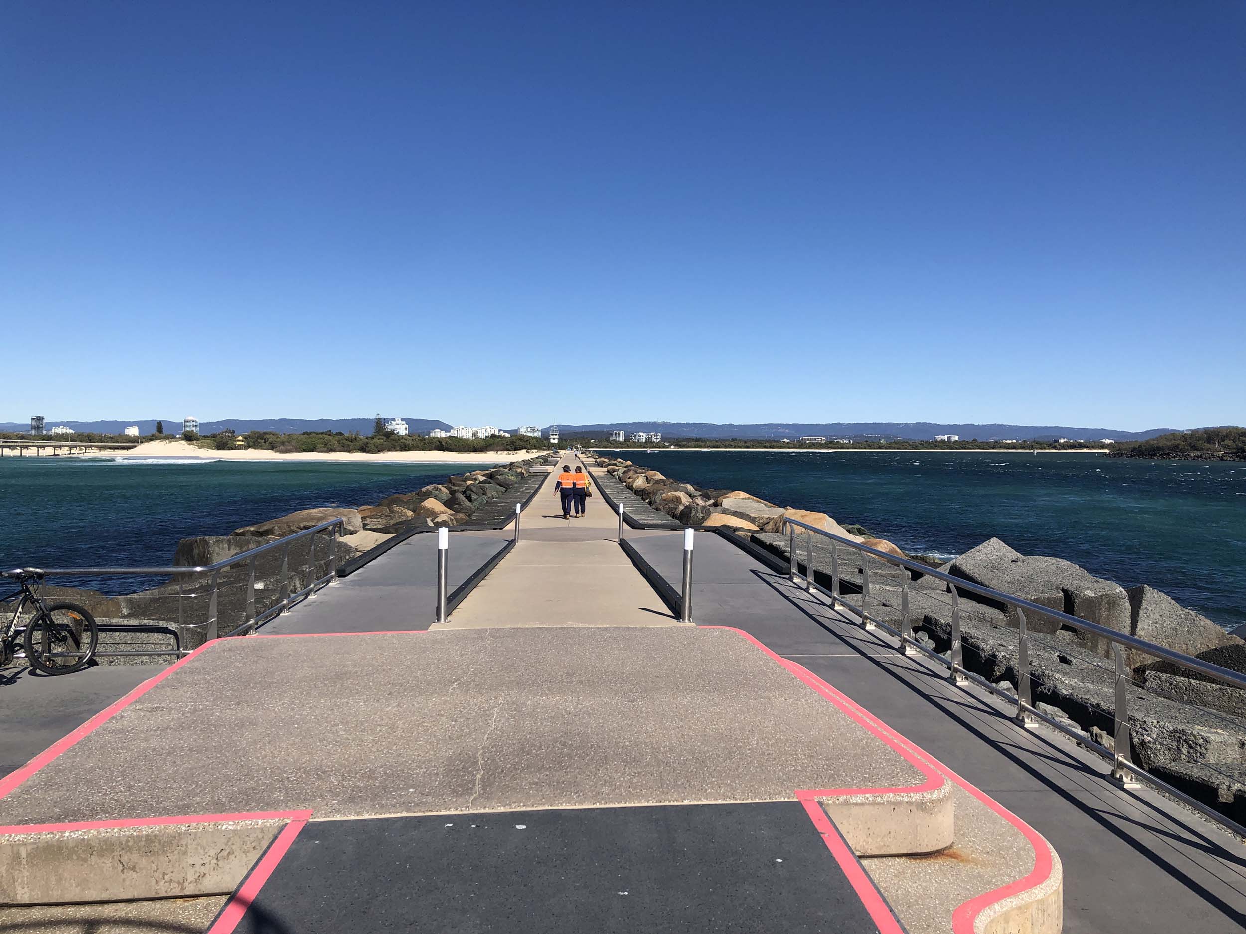 Over the Bridge at Narrowneck then along the Shared Path, towards The Seaway/Spit, via the jetties of Marina Mirage, a lap of the Seaworld Carpark, a lap of the Muriel Henchman carpark and finally made it to the tip of the Seawall/Spit. Stopped and took my photos and ate my banana, then rode to the tip of the Moondarewa Spit, took more photos.