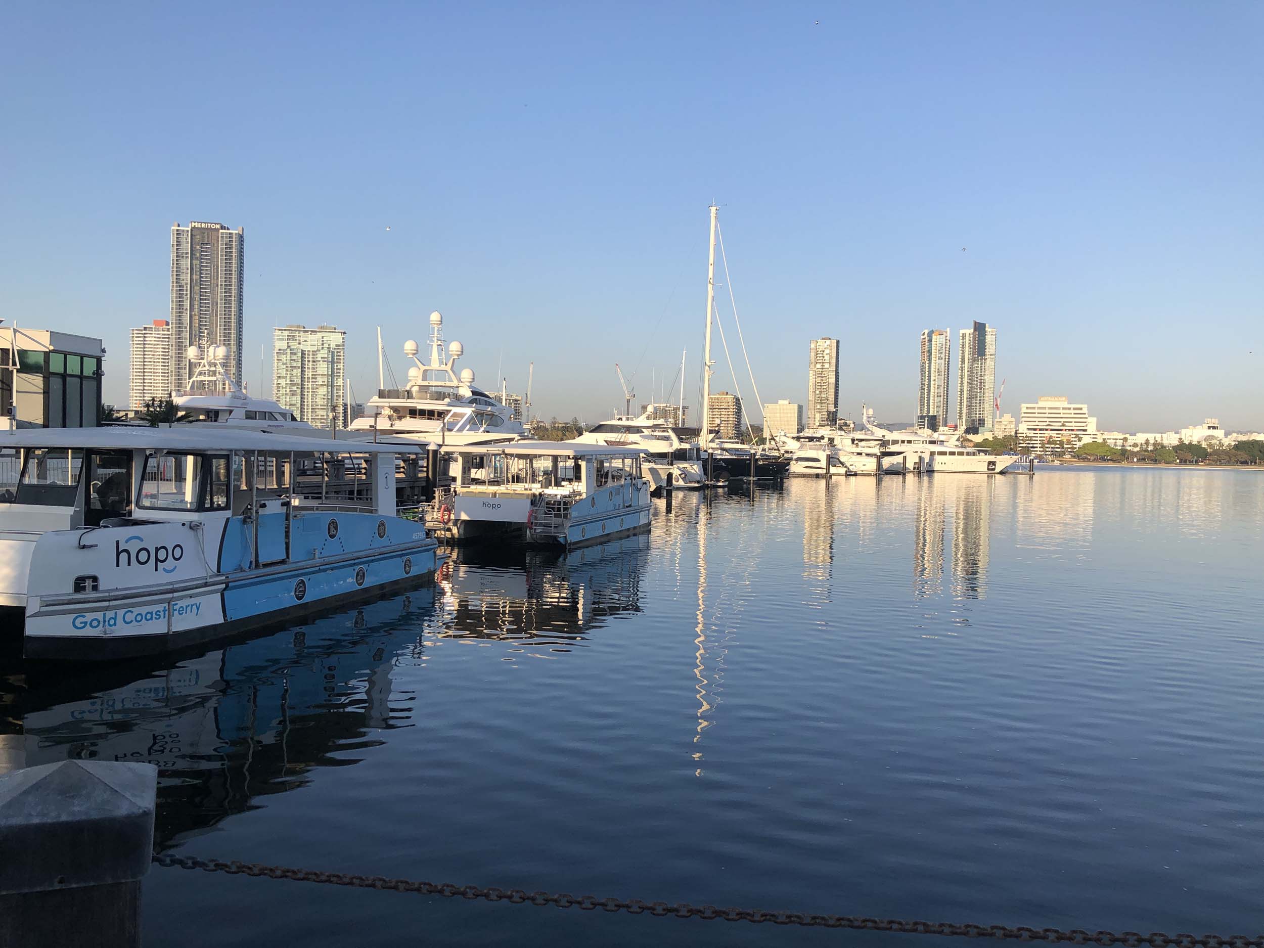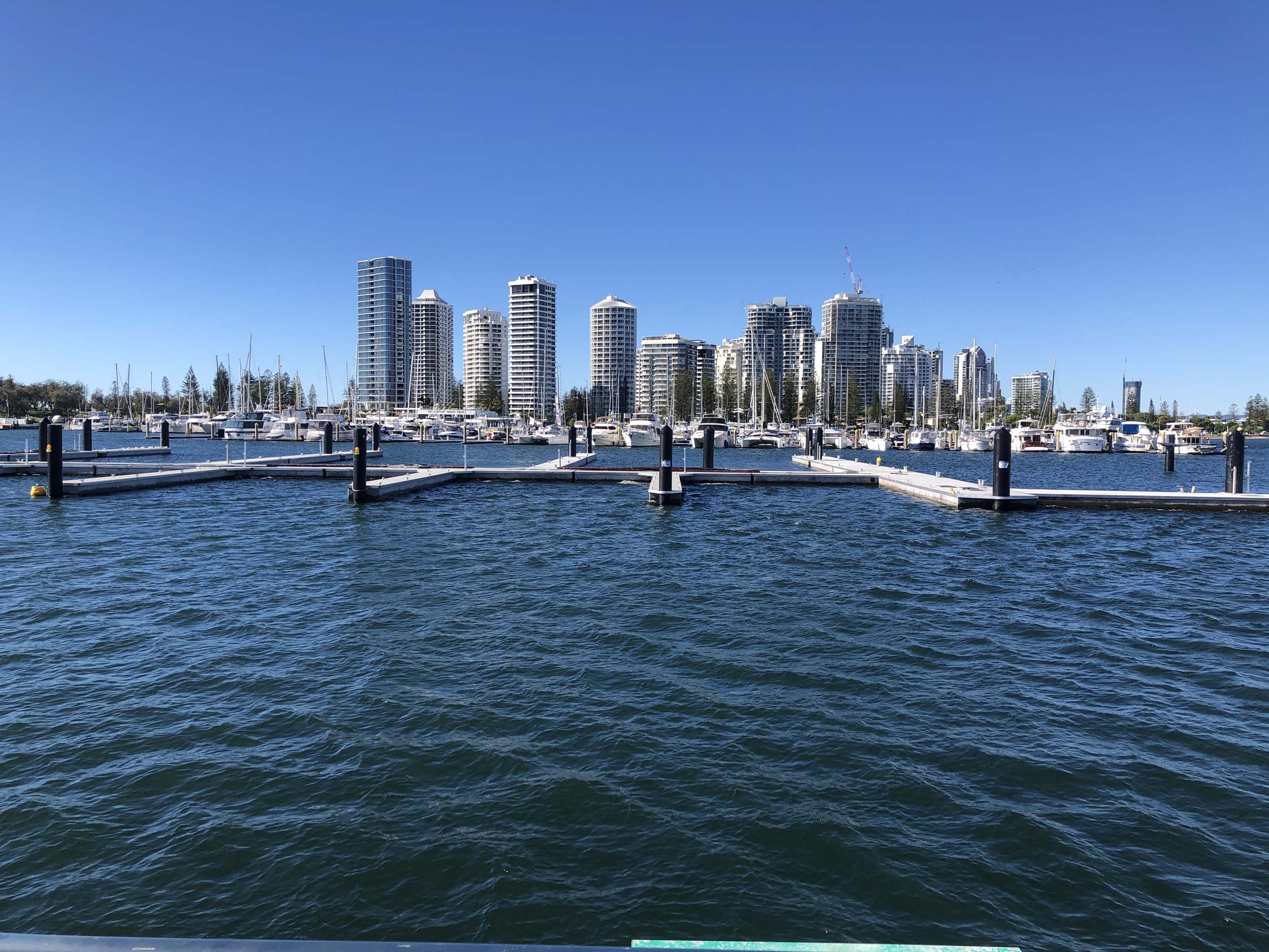 8:15am - On one of Marina Mirage jetties looking towards Southport YC marina and the Sundale Bridge.