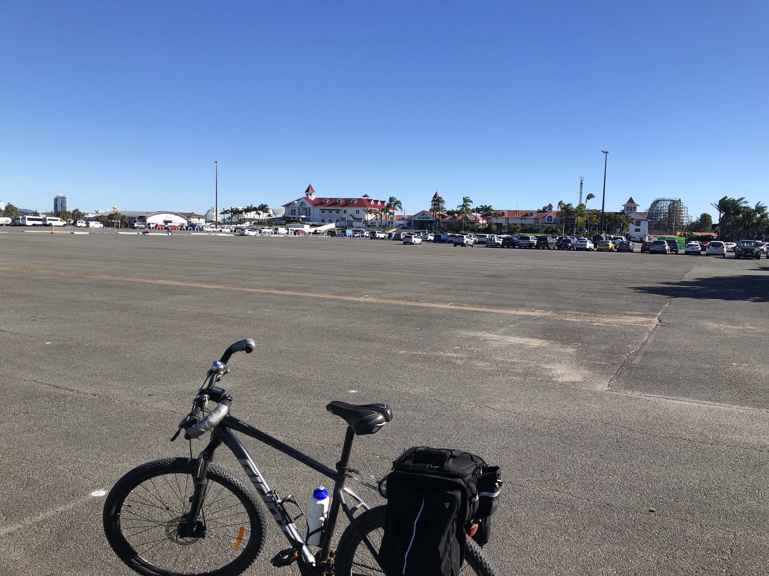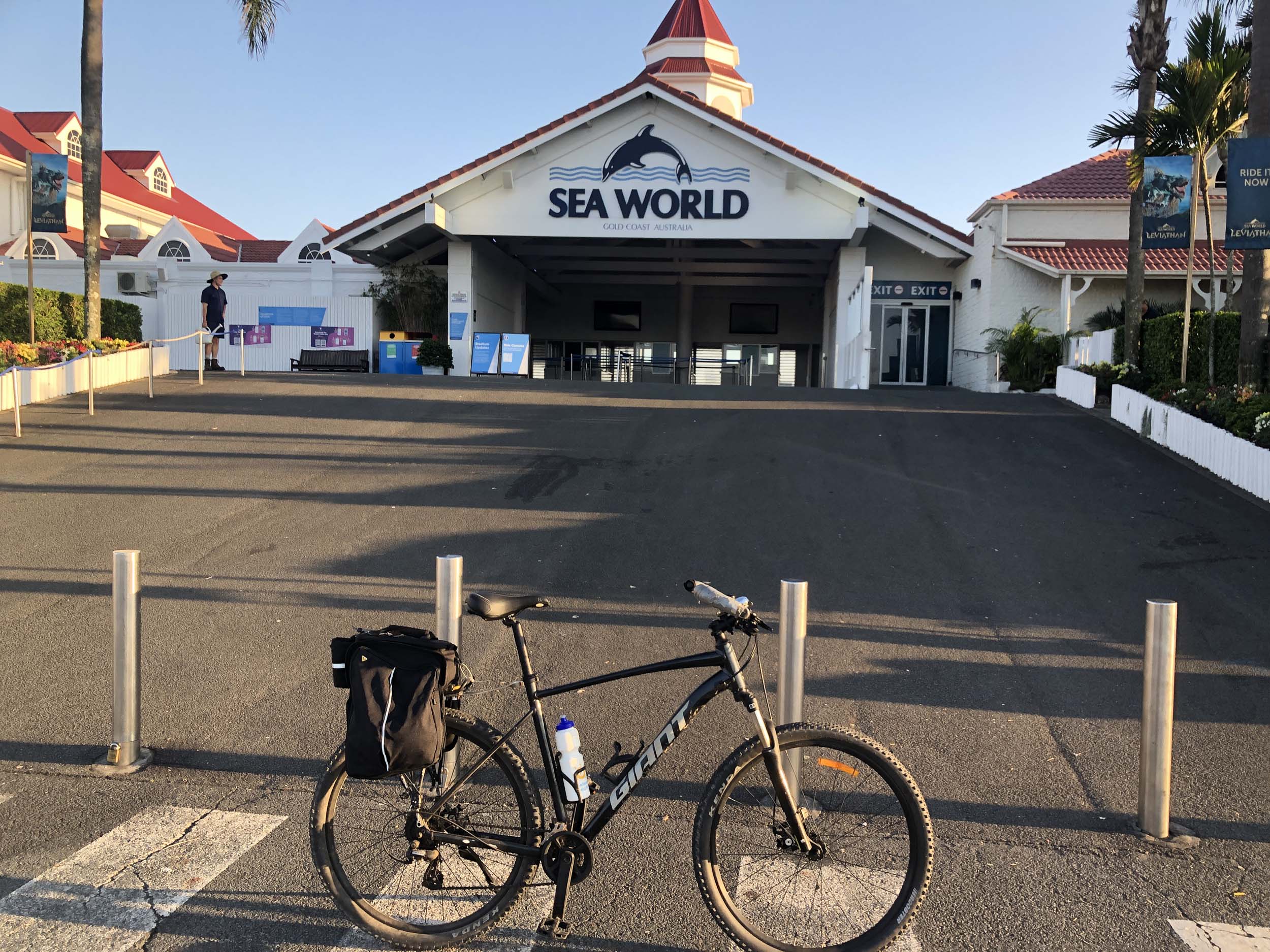 Continued upto and through the Seaworld carpark, stopping at the main entrance for a photo. Strange how there were nobody there.
