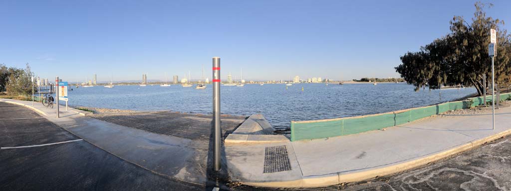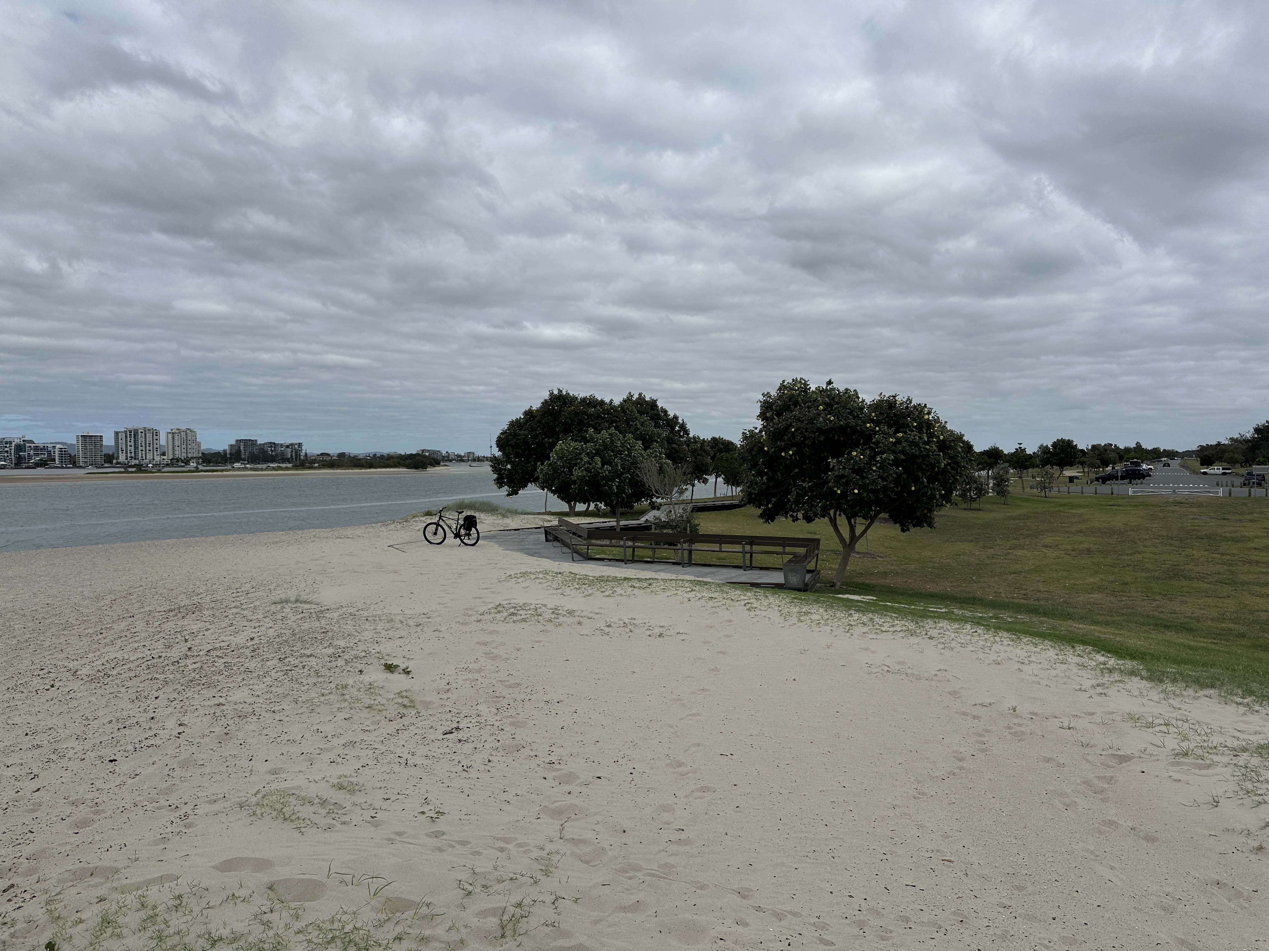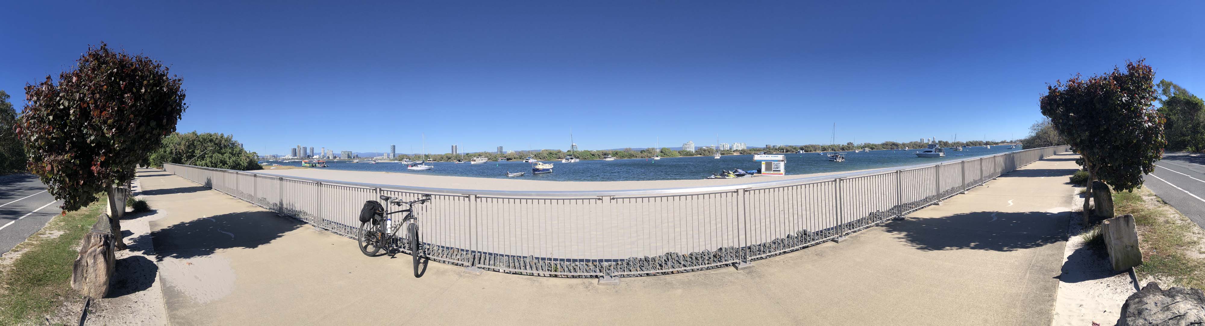 I headed towards Southport first, as I approached the Sundale Bridge, all the stalls for the Gold Coast Show have now been removed. I rode over the Sundale Bridge then headed towards Mirage Mirage complex, around the perimeter of Seaworld carpark, a lap of Muriel Henchman Park, headed to the tip of Moondarewa Spit, then out to the end of the Seaway/Spit, then headed home.