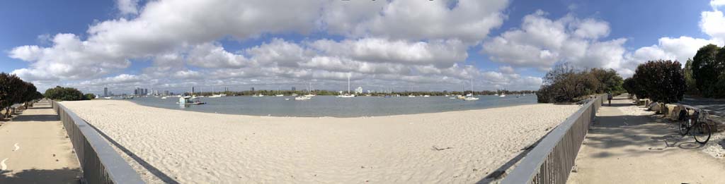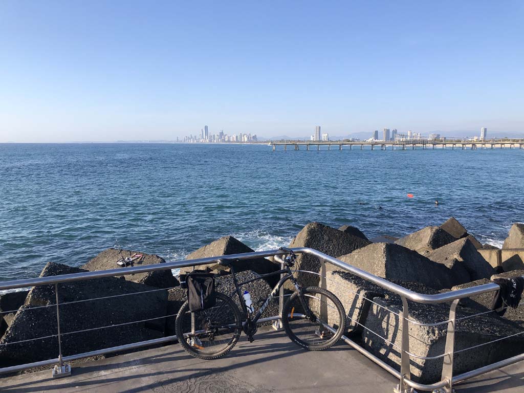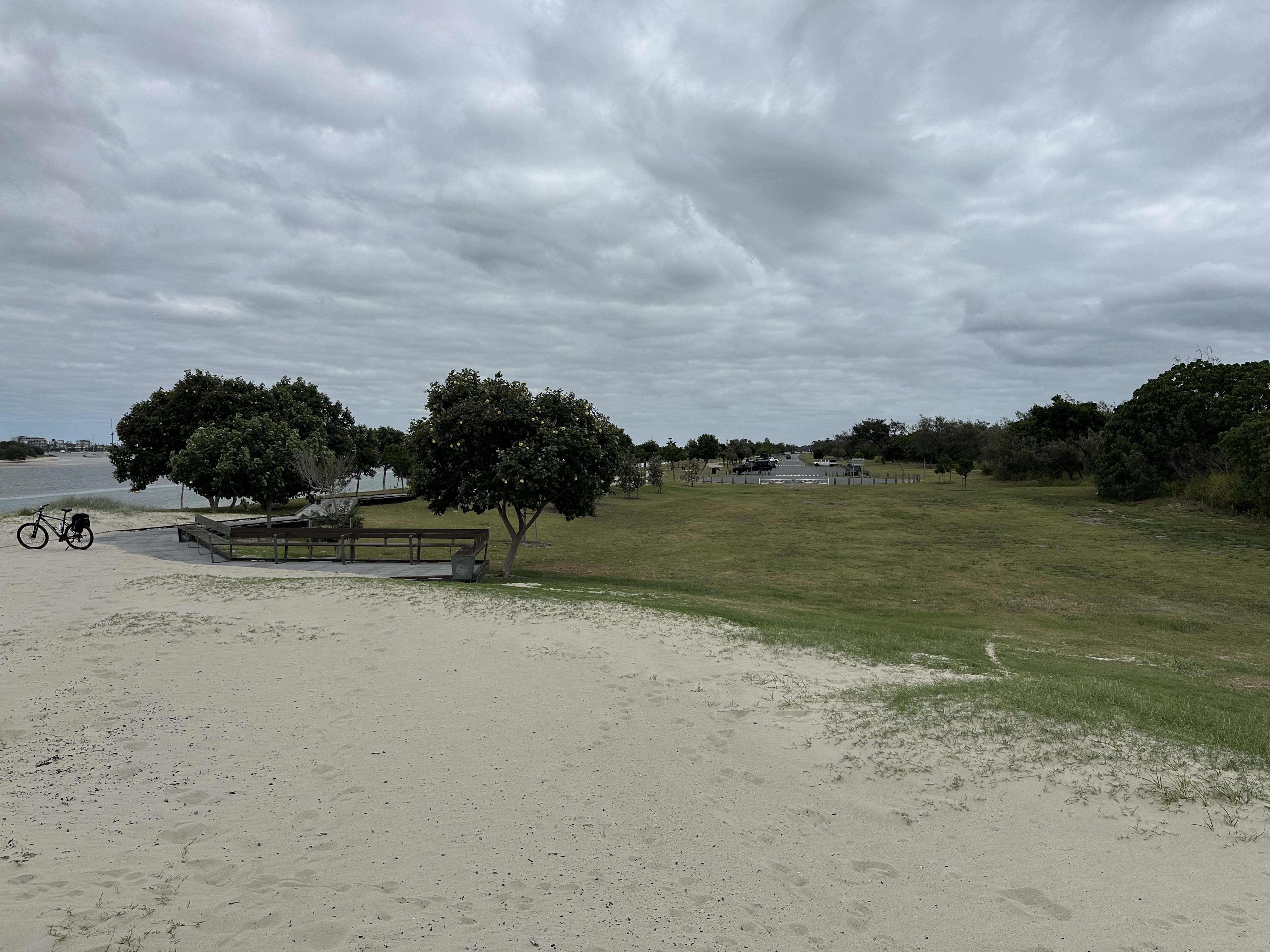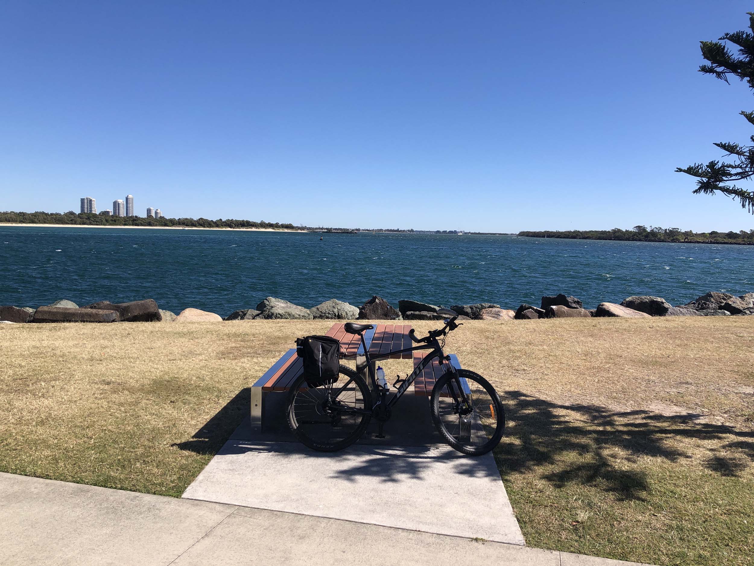 I headed towards Southport first, as I approached the Sundale Bridge, all the stalls for the Gold Coast Show have now been removed. I rode over the Sundale Bridge then headed towards Mirage Mirage complex, around the perimeter of Seaworld carpark, a lap of Muriel Henchman Park, headed to the tip of Moondarewa Spit, then out to the end of the Seaway/Spit, then headed home.