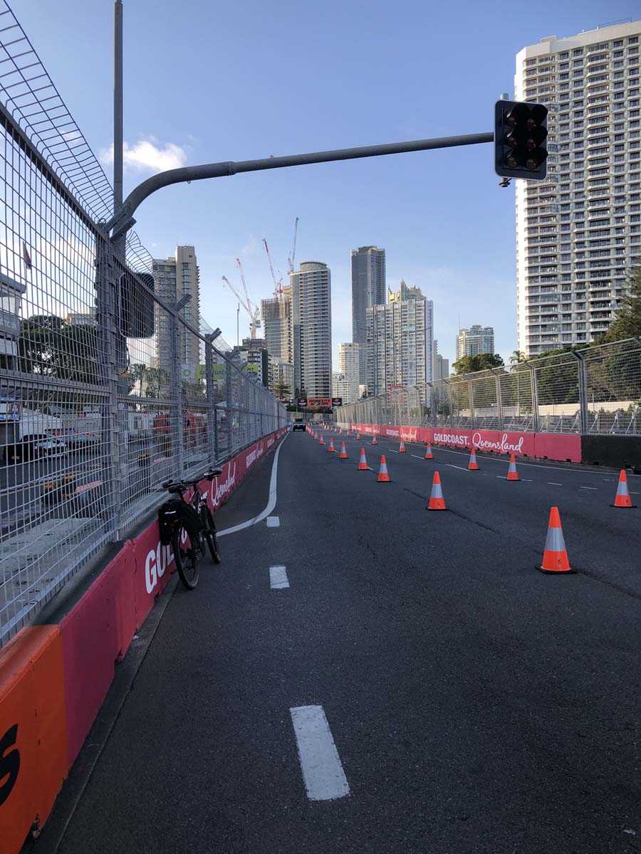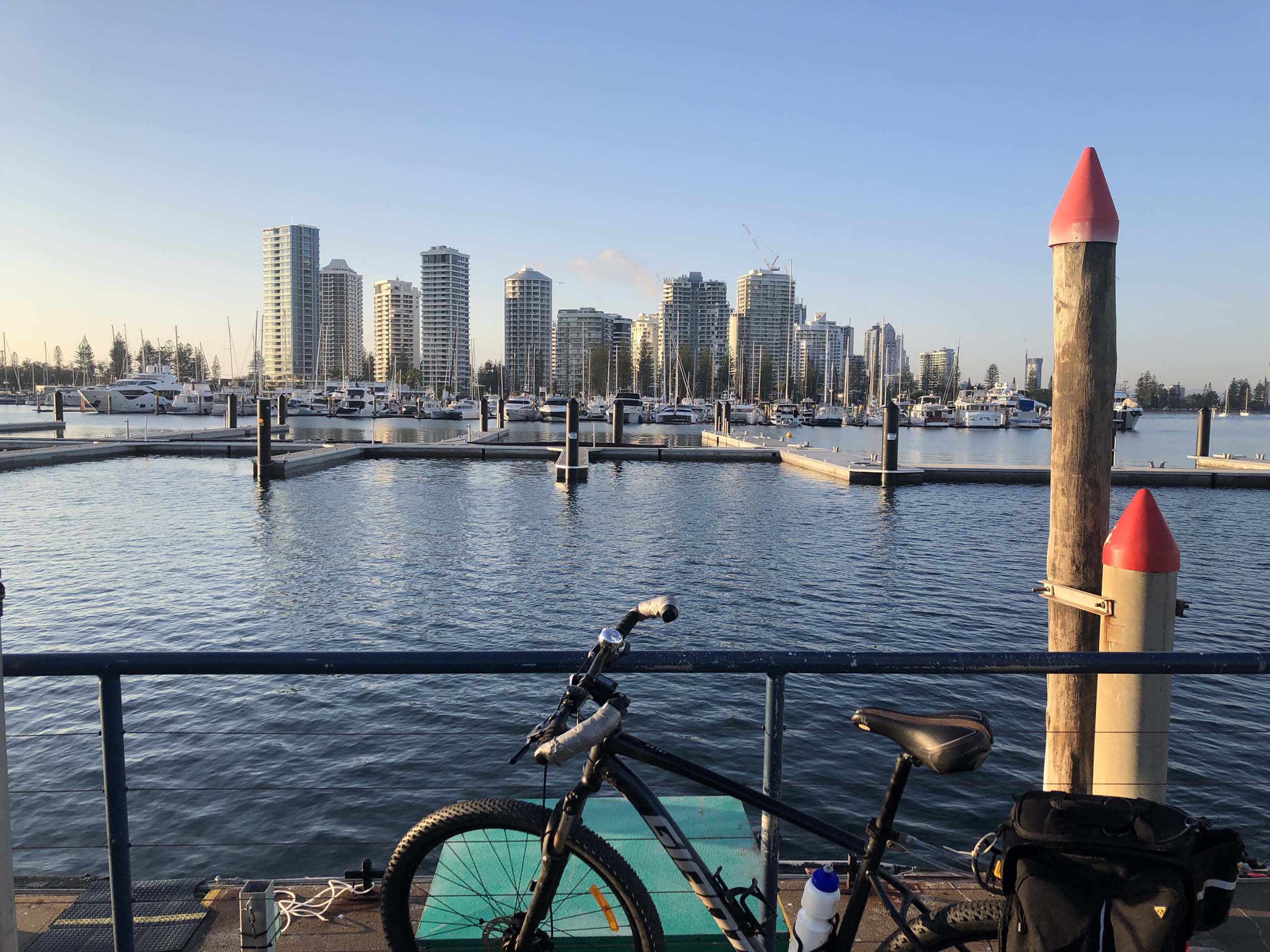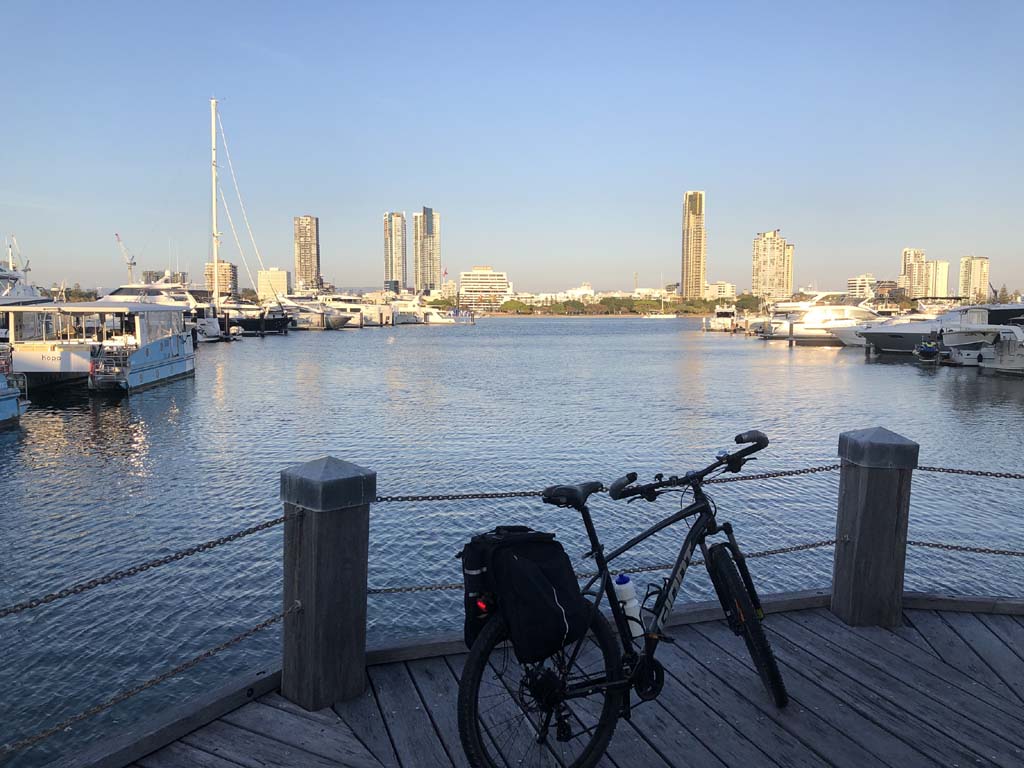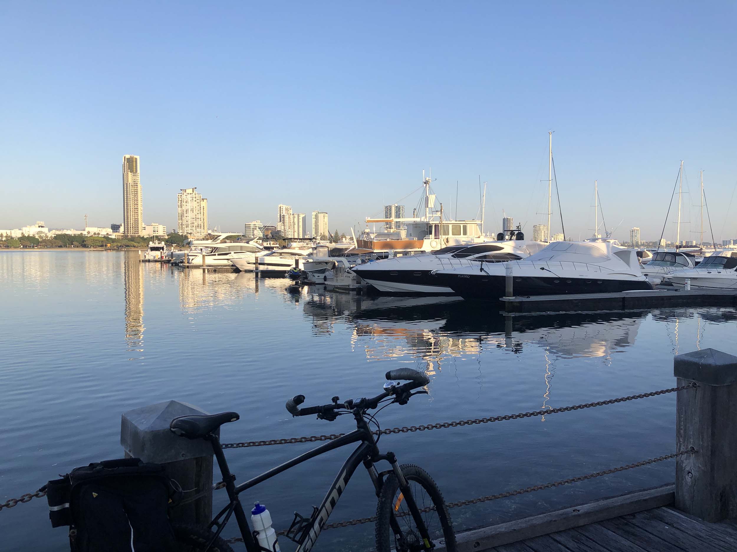Riding through the Marina Mirage complex and jetties, the sun was rising and I stopped many times to take photos. The views were magic.