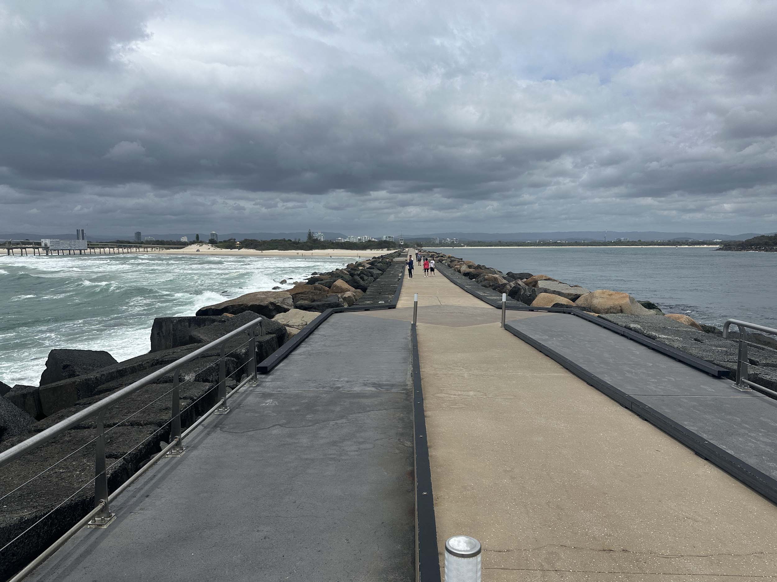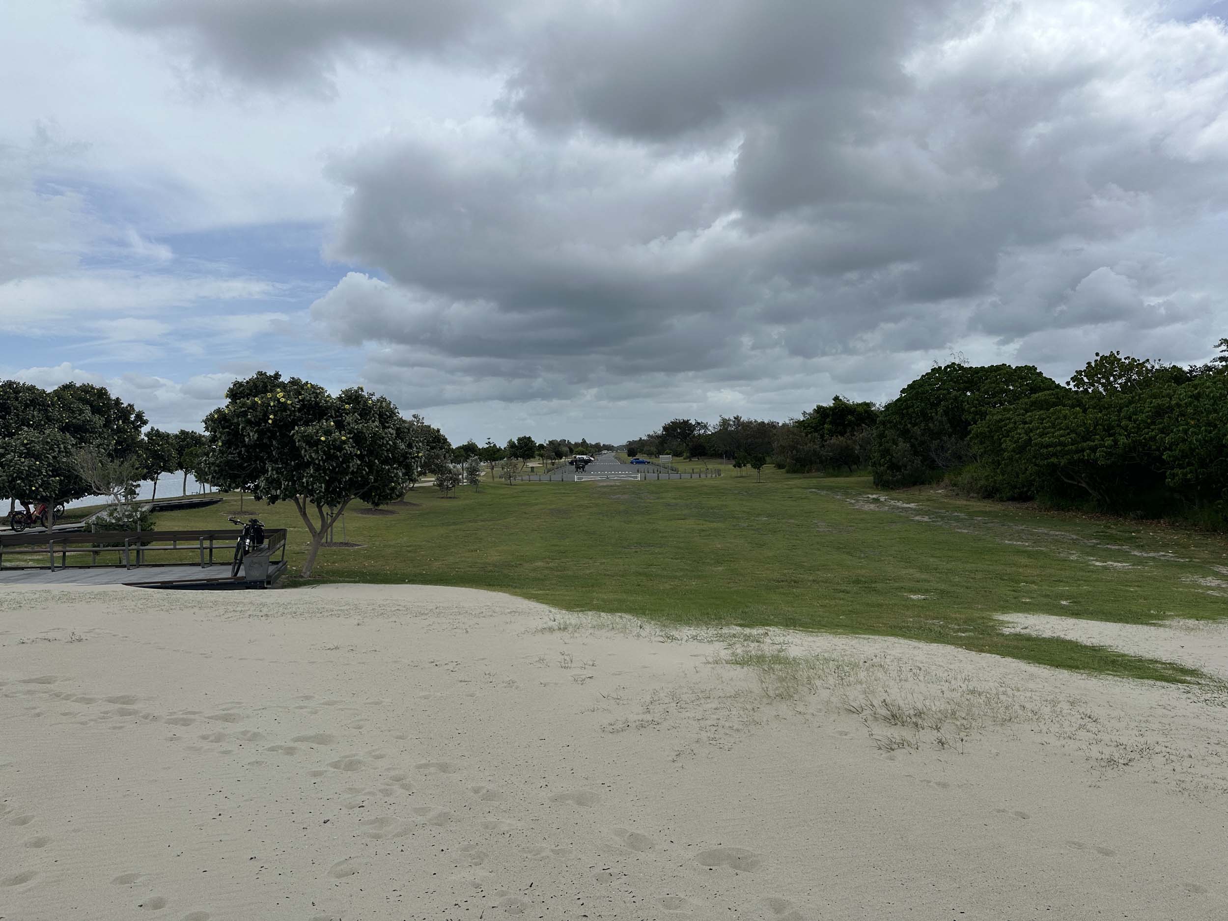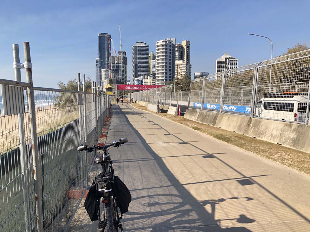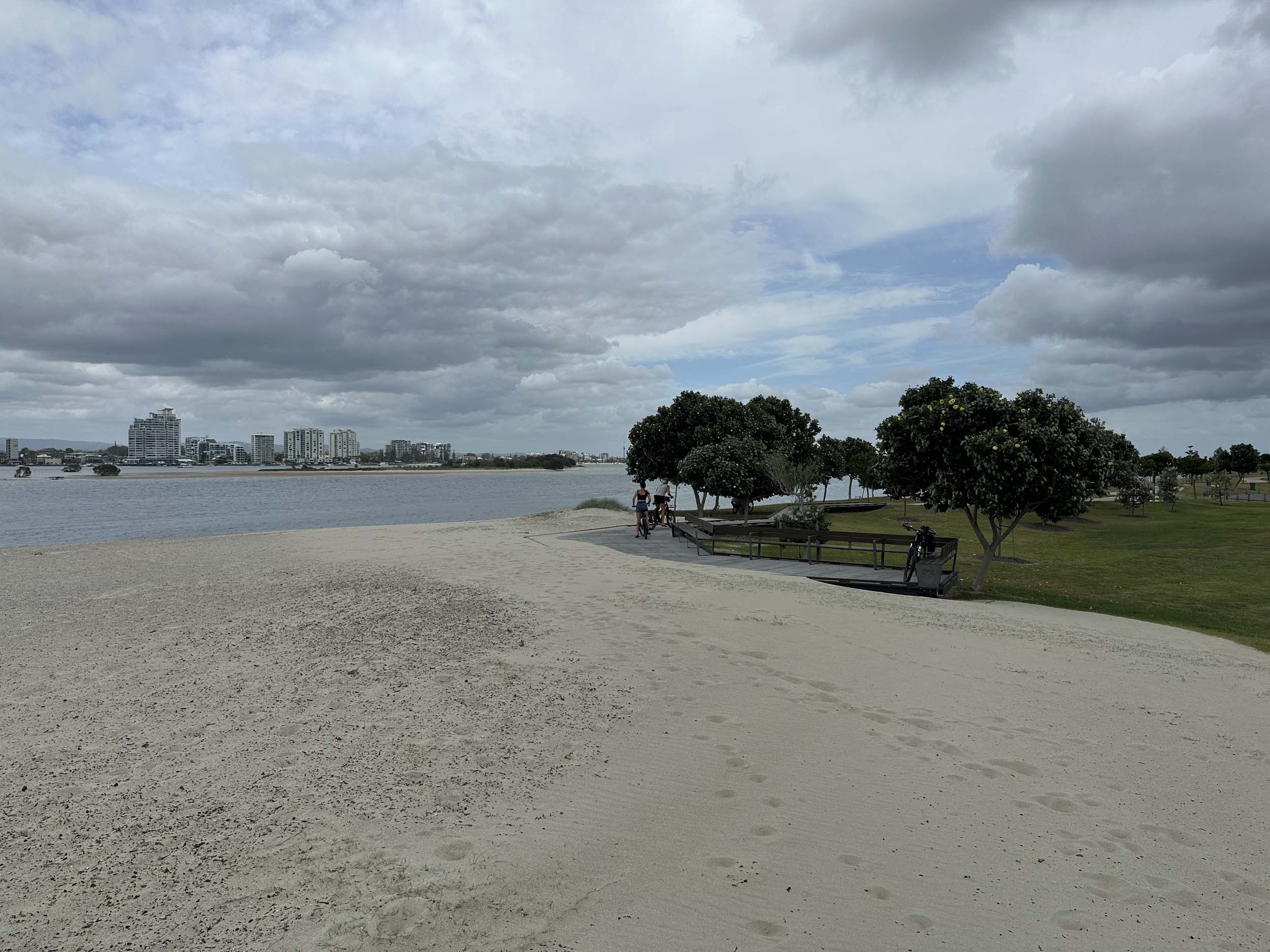When I got to Southport SLSC, the shared path that ran along the edge, had been completely eroded by Alfred. You now ride along the grass areas.