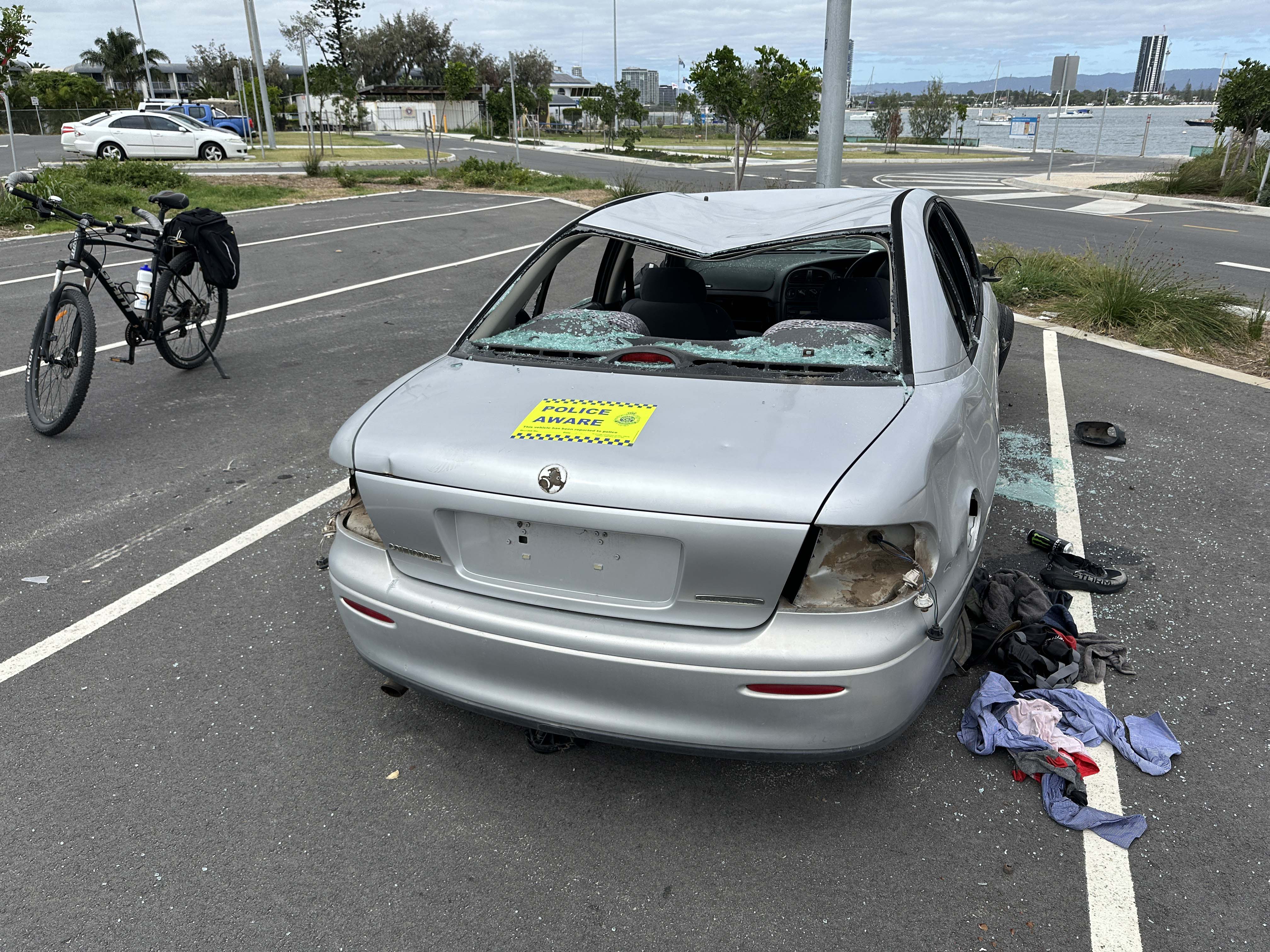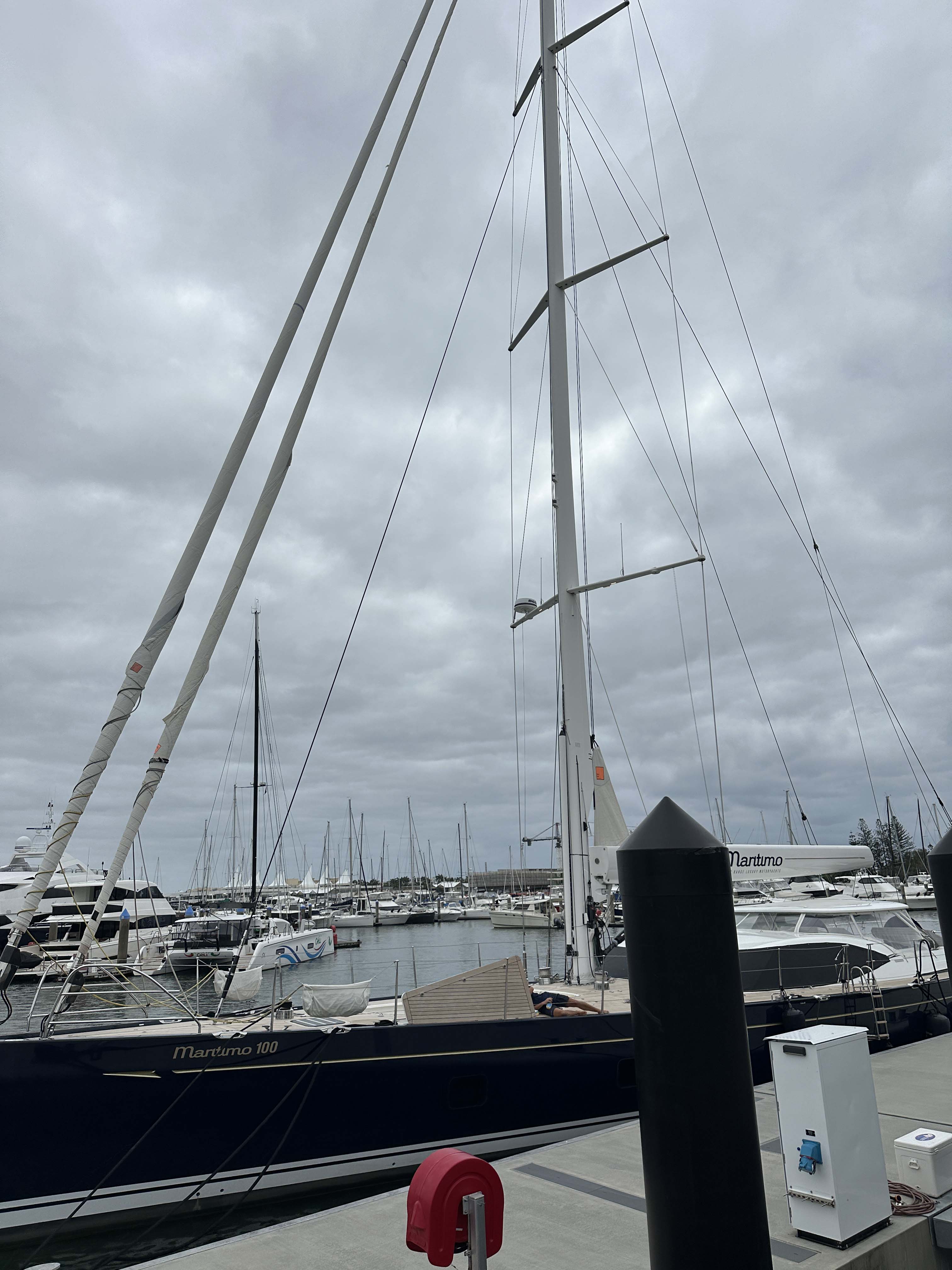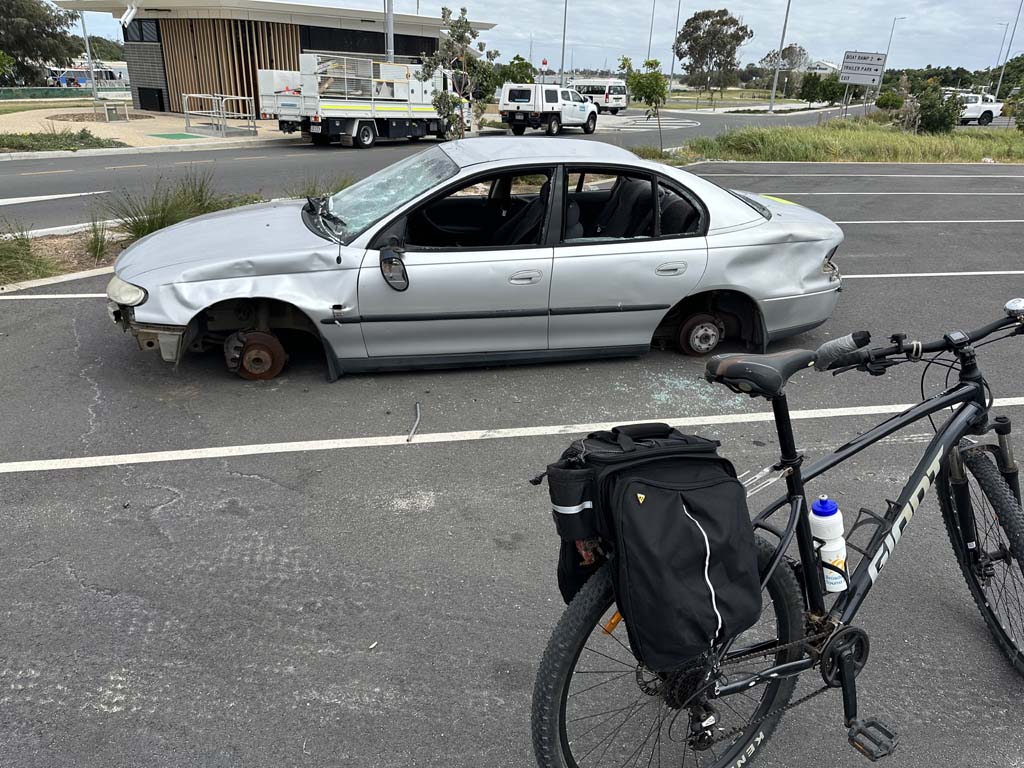 Over the Bridge and through the Southport YC then along the Shared Path, towards The Seaway/Spit. The superyacht jetty was full, with "Sunset", "Zuri" and "Maritimo 100" all tied up at the jetty. Stopped and speak to one of the crew aboard "Maritimo 100" about their Sydney to Hobart race, which they had to retire from, due to a fault. I took photos on my way to and on my way from The Spit. I rode around the Marina Mirage shopping complex (which is being demolished), followed by a lap of the Seaworld Carpark. Through the Muriel Henchman carpark, which had a wrecked car there, continuing out to the tip of the Moondarewa Spit, took more photos then finally made it to the tip of the Seawall/Spit. Stopped and took my photos.