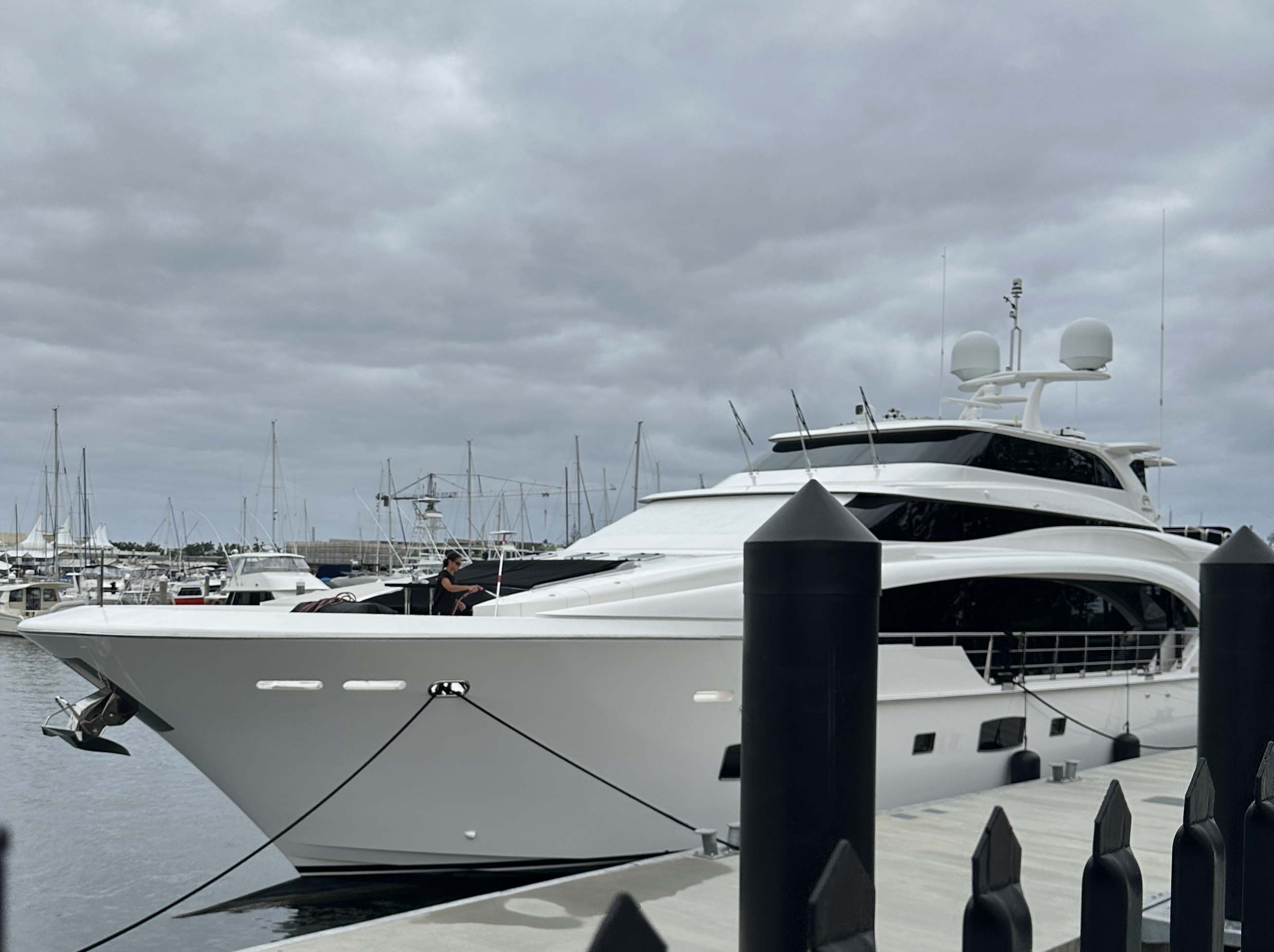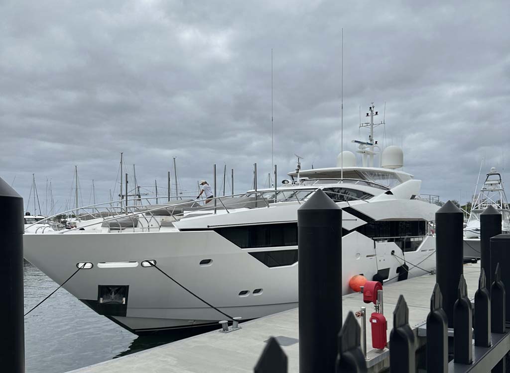 8:09am - The view from the end of one of Marina Mirage's jetties.