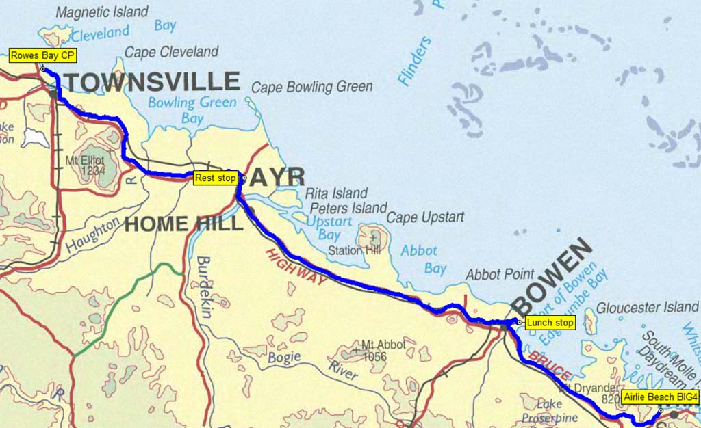 Our route from Airlie Beach to Townsville.