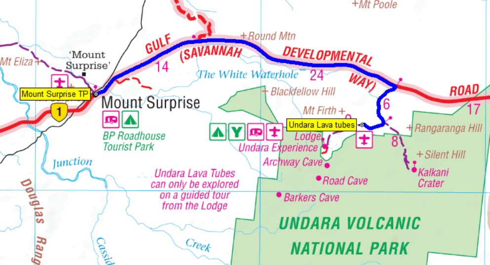 Tomorrow we are still at Mt Surprise and going on a morning tour of the Undara Lava Tubes. Should be fun.