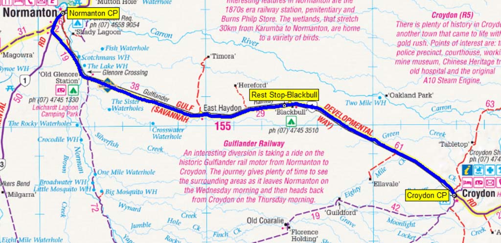 We left and drove the 155kms to Normanton. Set the cruise set on 90kph and away we went. Stopped at Blackbull Siding for a smoko.