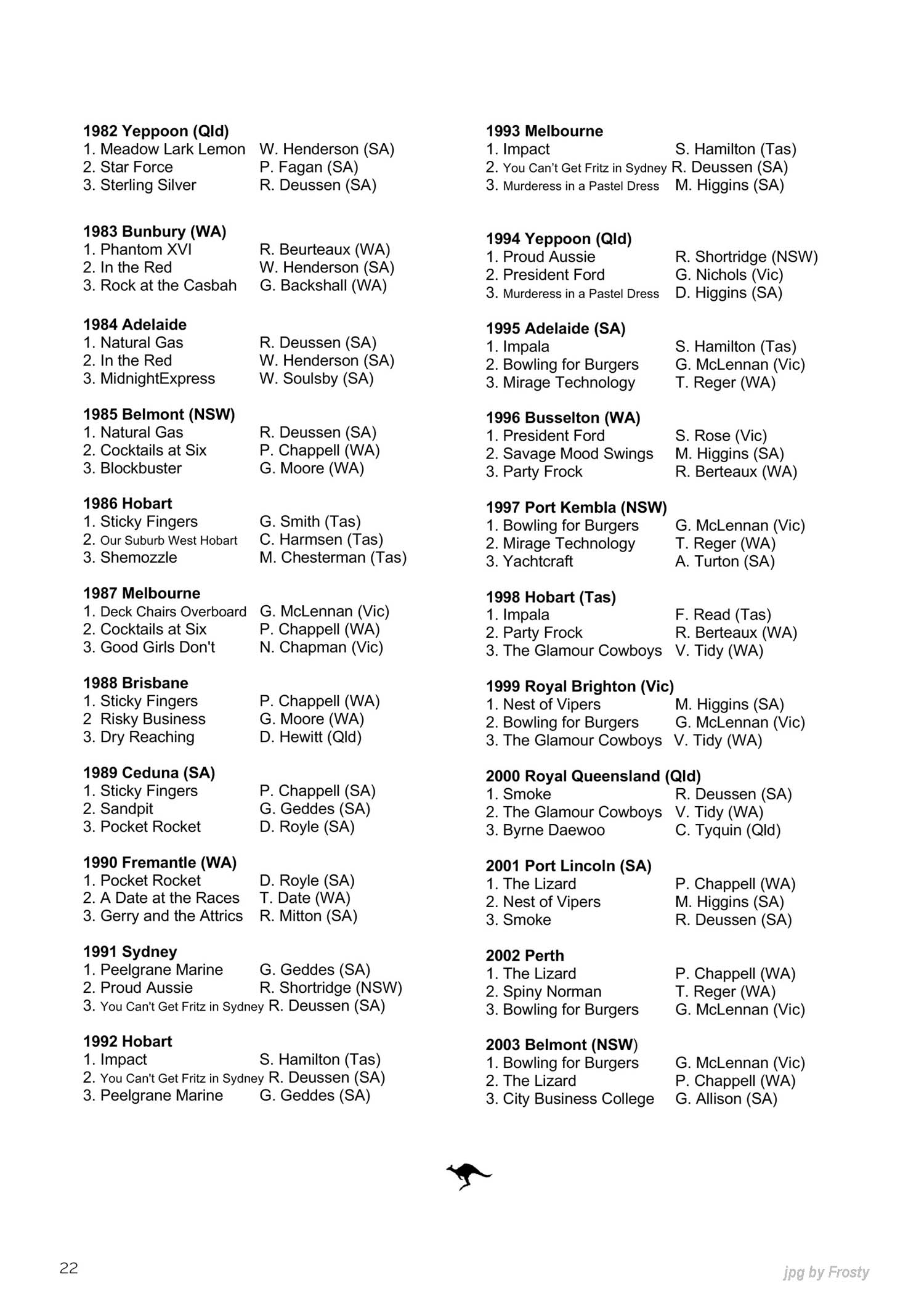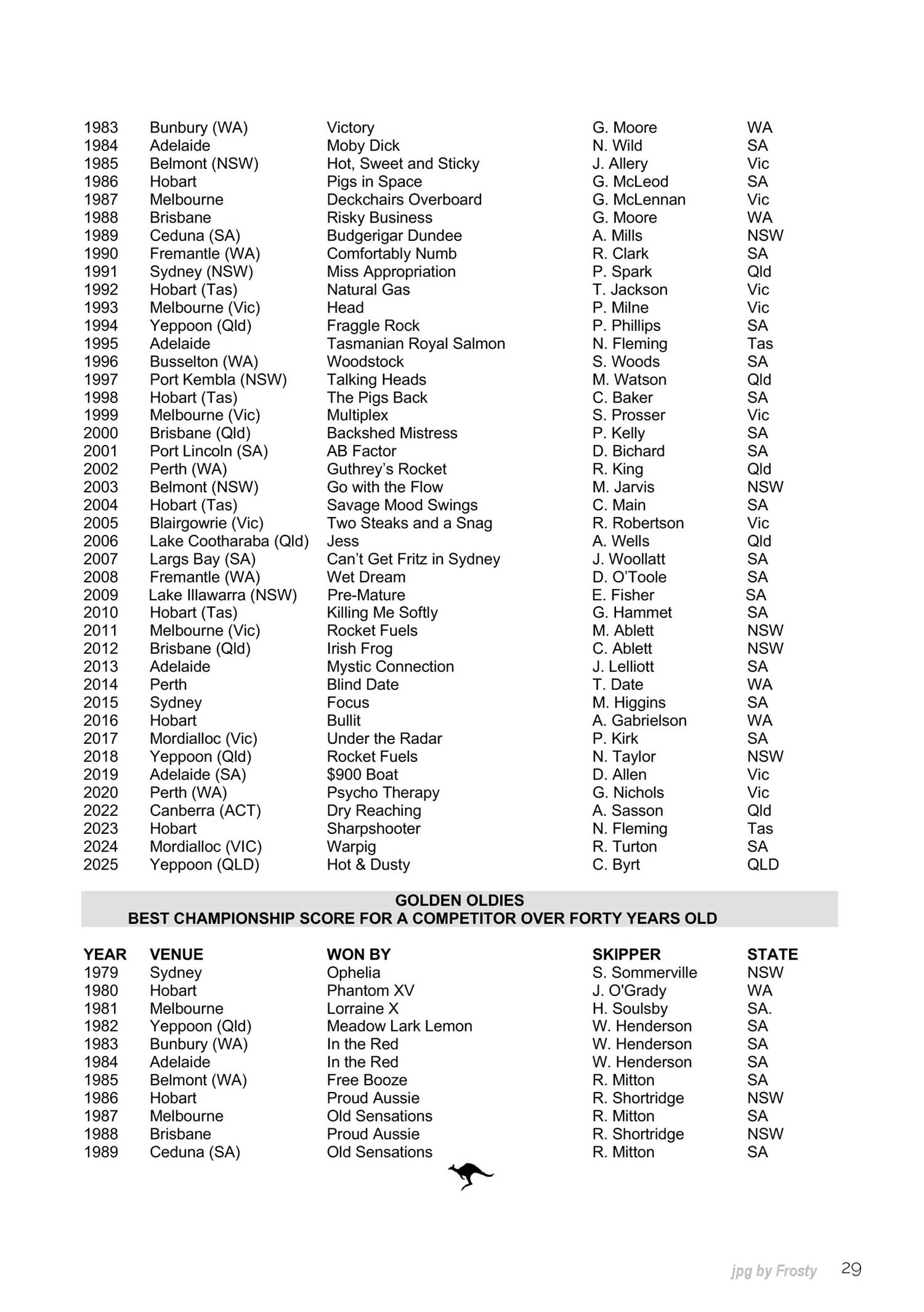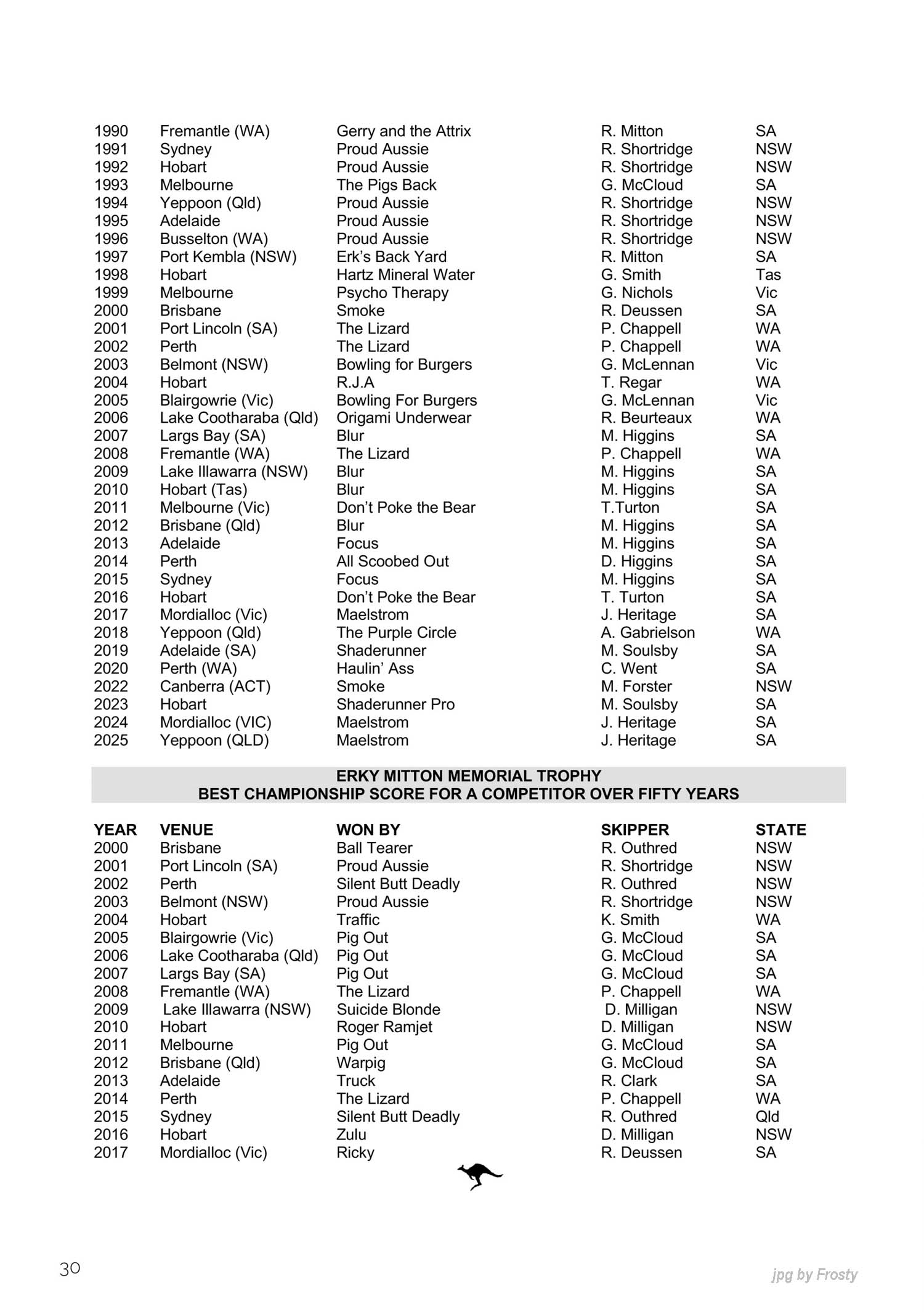 It was very hard to get a photo. My 1st photo of me at an Aussie Title, was in 1972 at Grange SC, SA.)