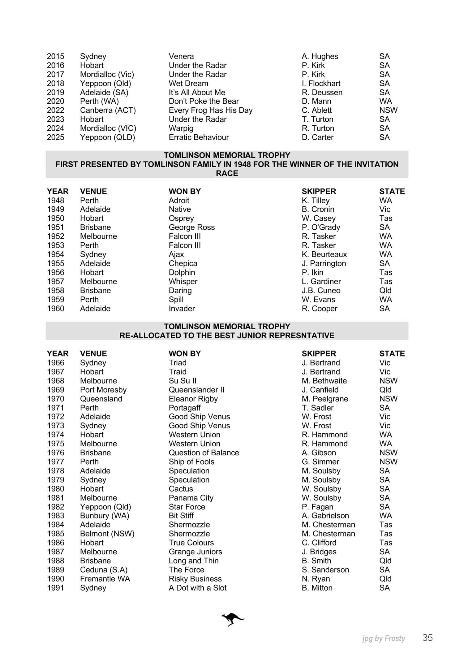 Hi Sam, Blowflies, N949 from Port Kembla Sailing Club - safe travels